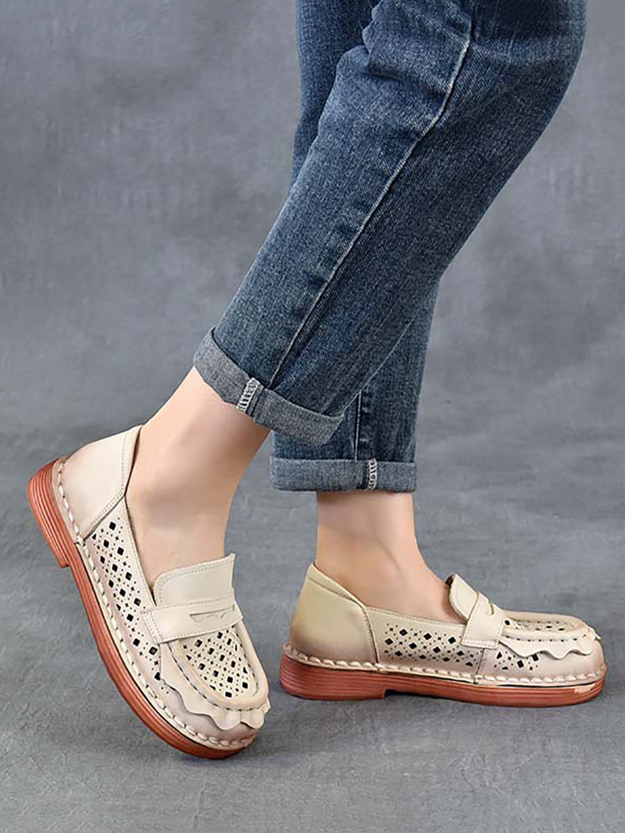 Women Spring Genuine Leather Hollow Out Shoes