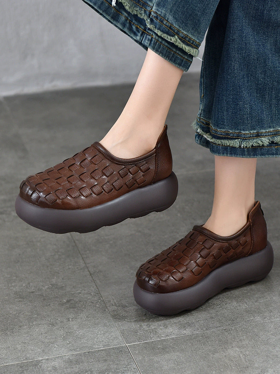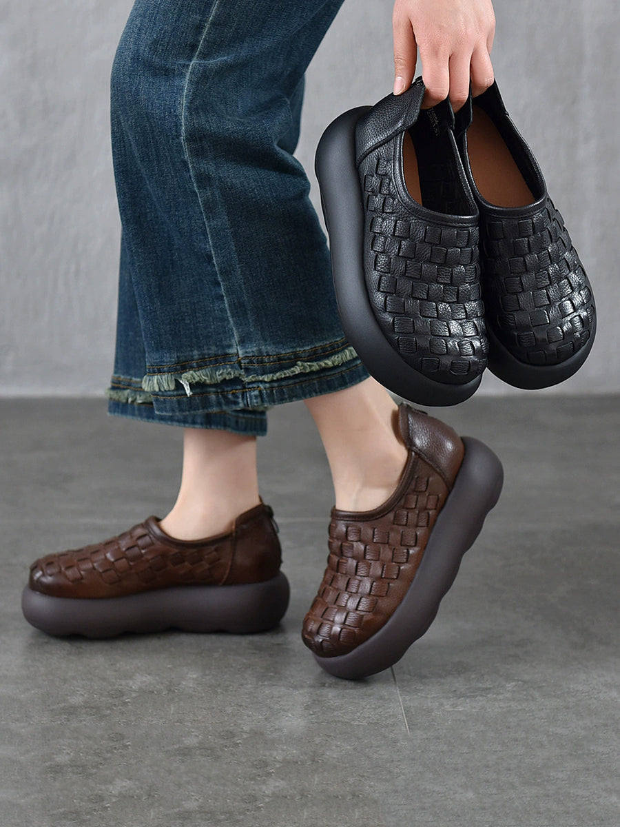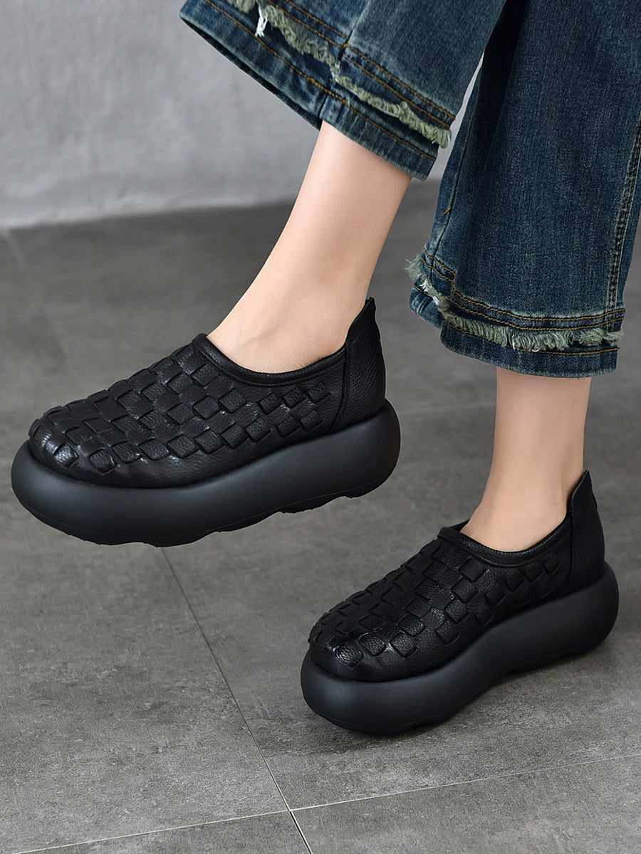 Women Spring Genuine Leather Weave Platform Shoes