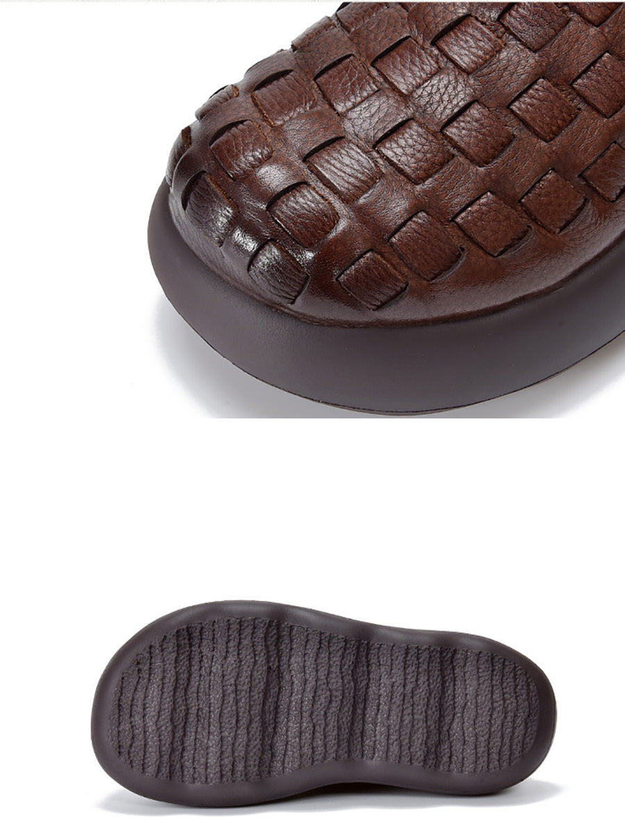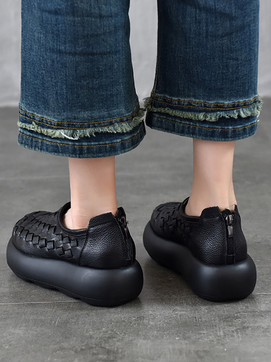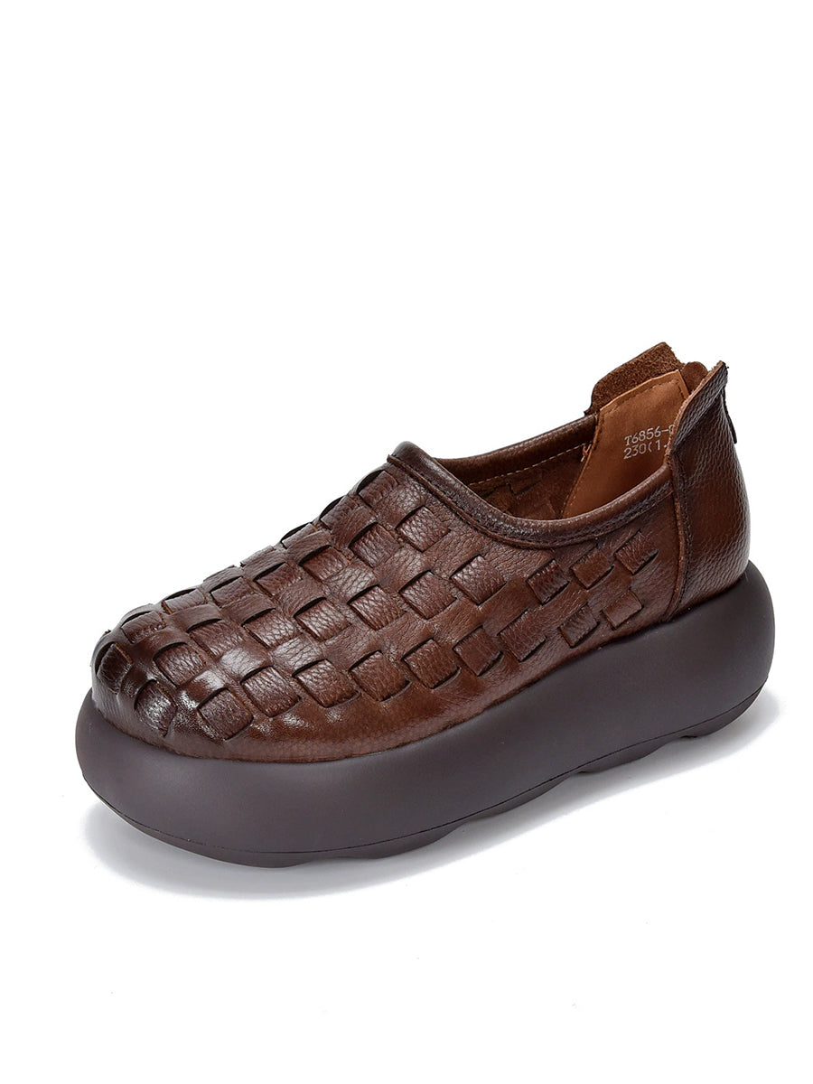 Women Spring Genuine Leather Weave Platform Shoes