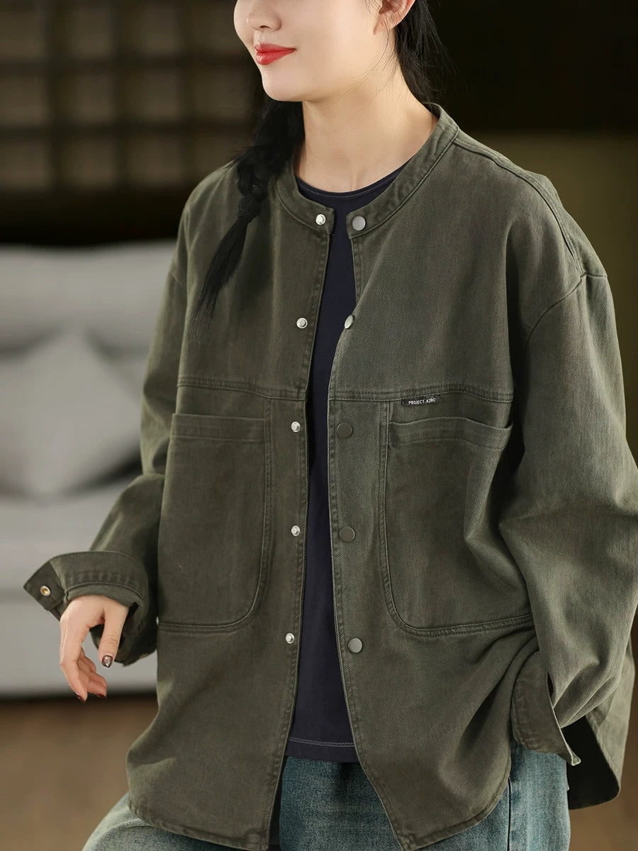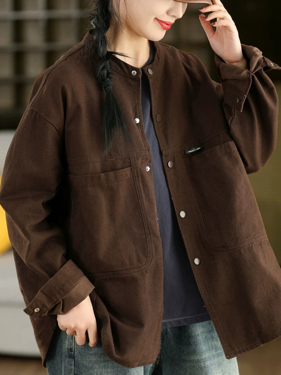Women Spring Pure Color 100%Cotton Shirt Coat