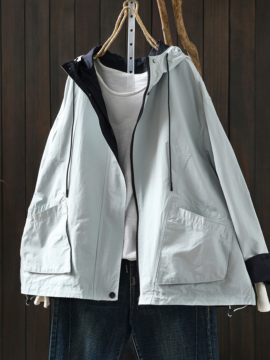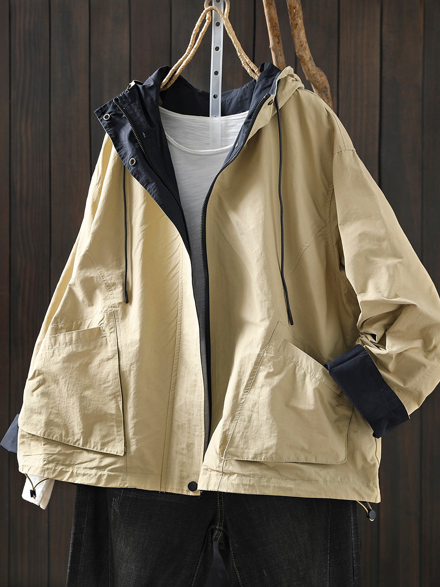 Women Spring Pure Color Cotton Hooded Coat