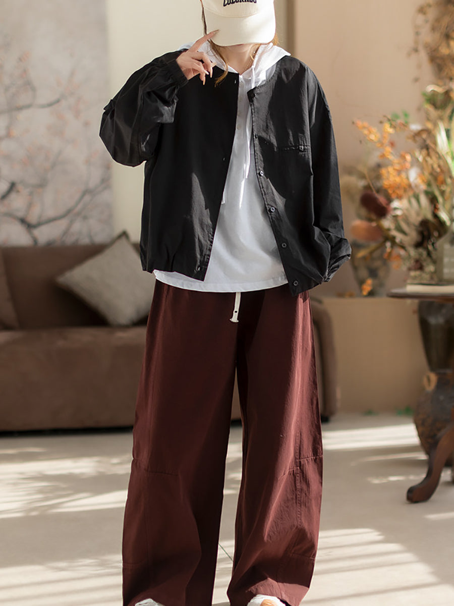 Women Spring Pure Color Cotton O-Neck Shirt Coat