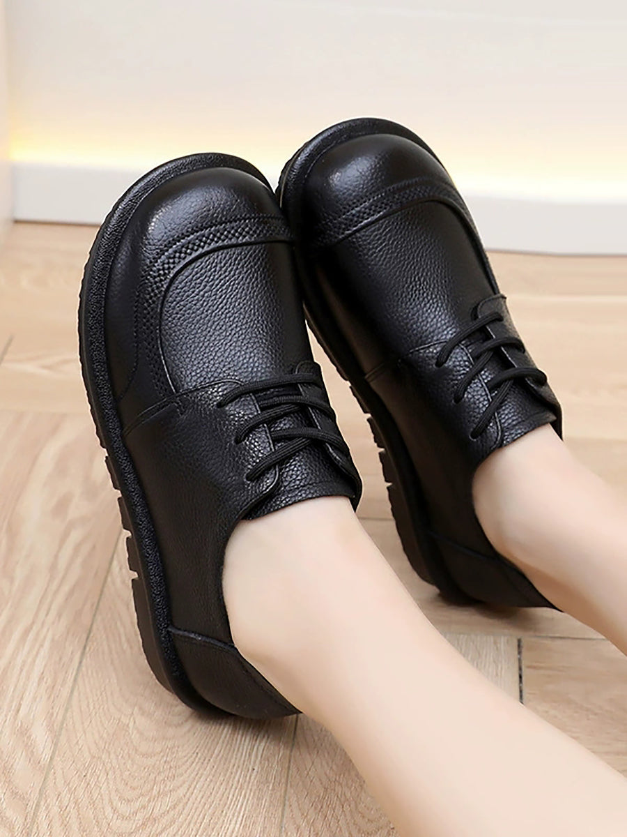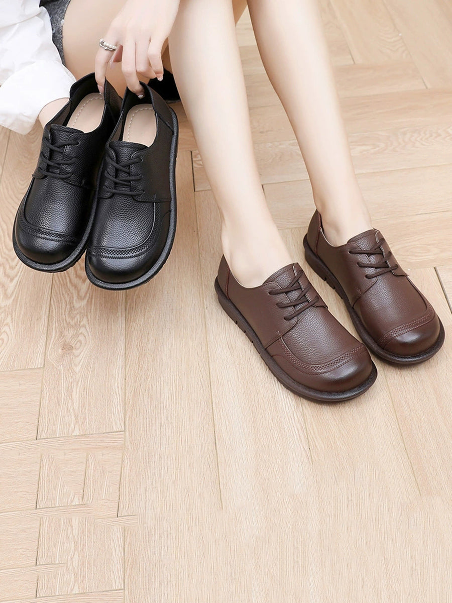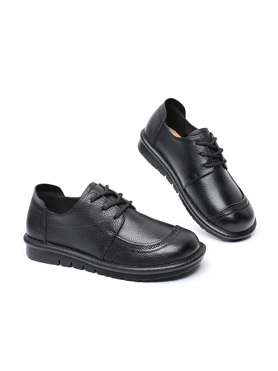 Women Spring Pure Color Genuine Leather Flat Shoes