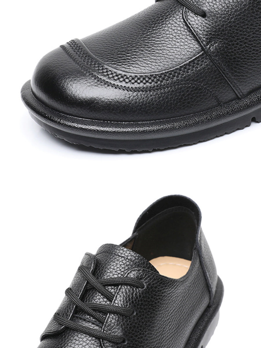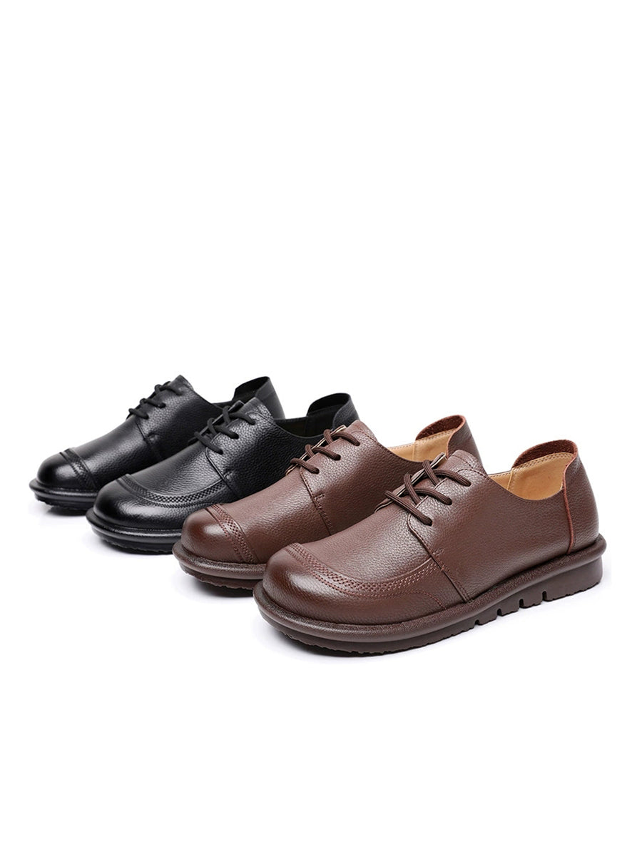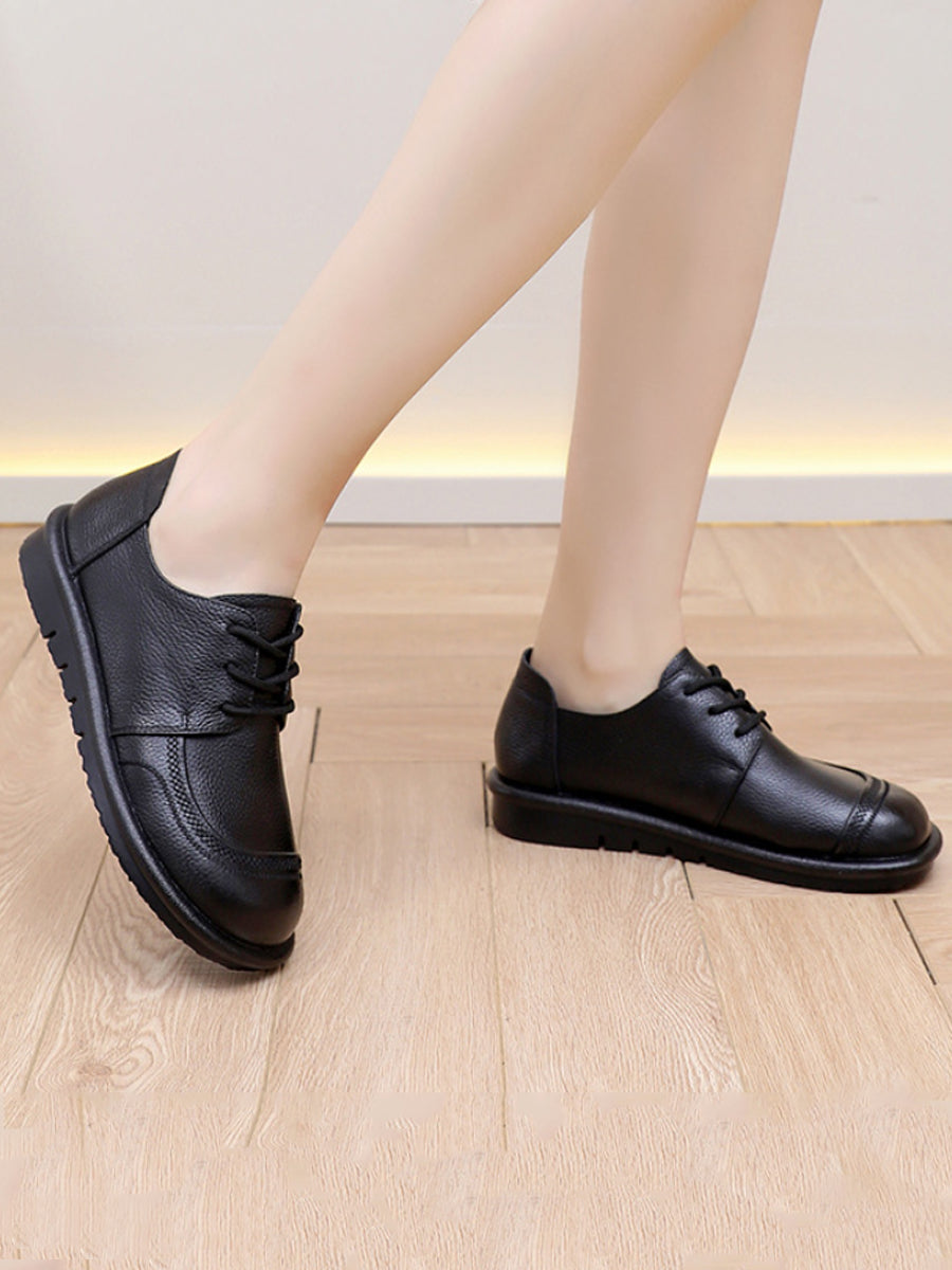 Women Spring Pure Color Genuine Leather Flat Shoes