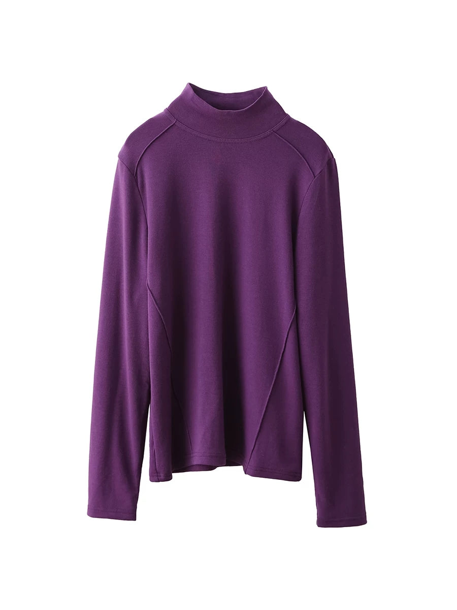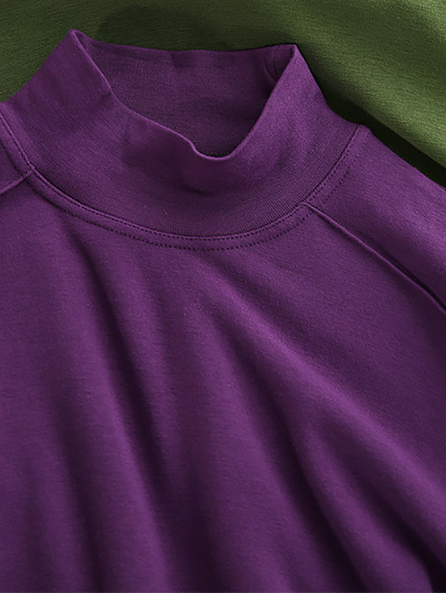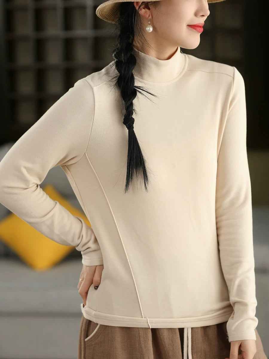 Women Spring Pure Color Half-turtleneck Blouse