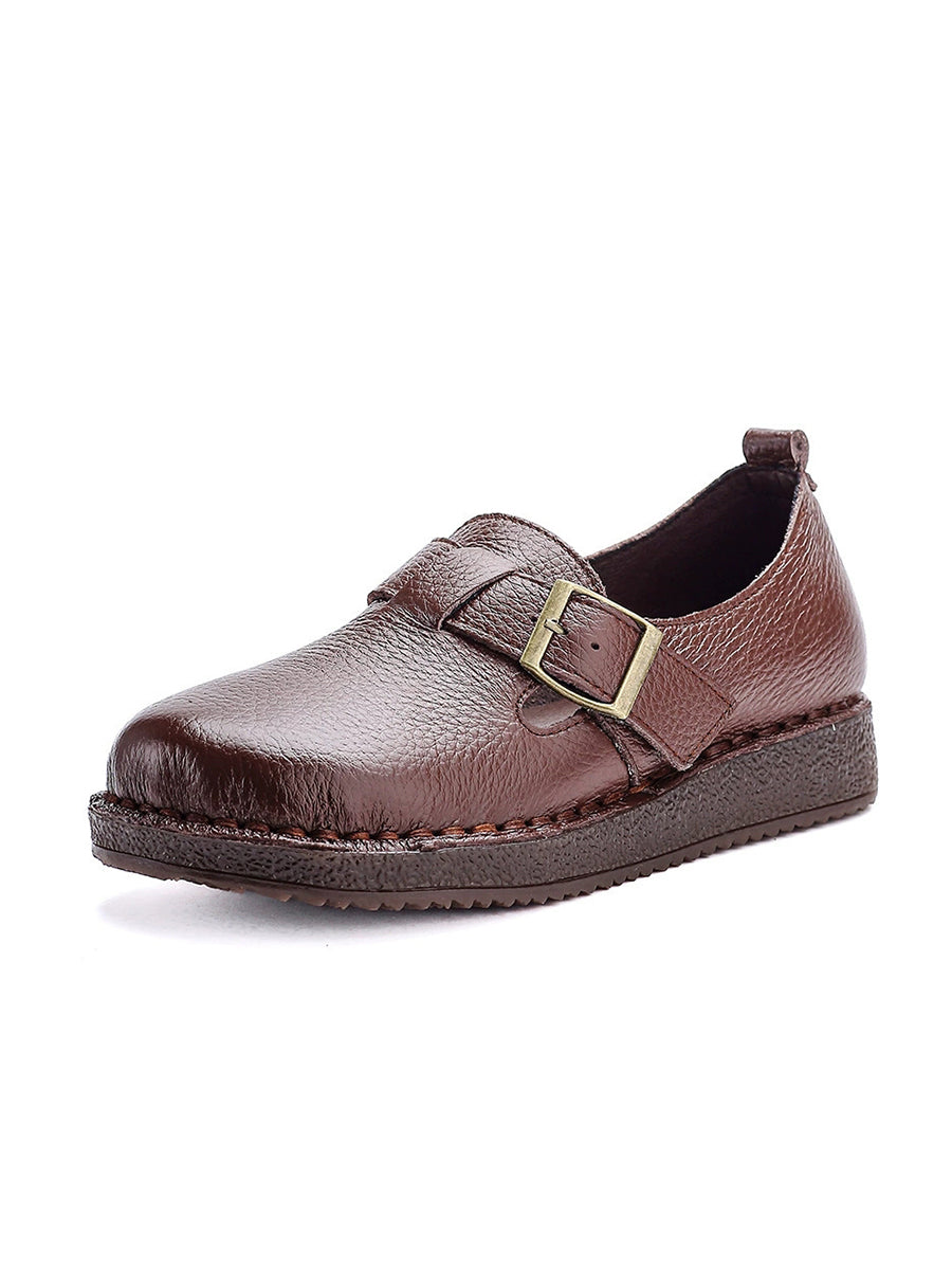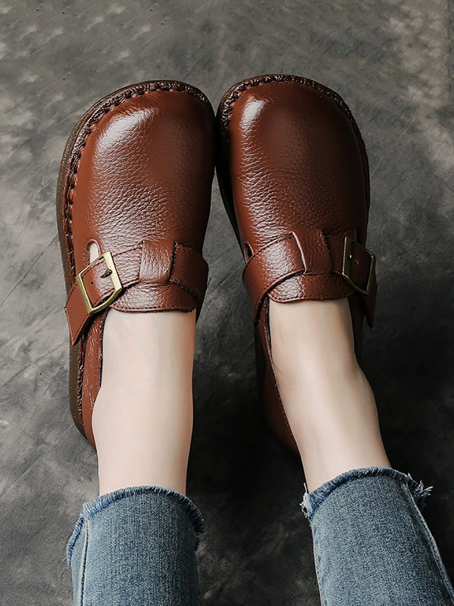 Women Spring Vintage Genuine Leather Flat Shoes