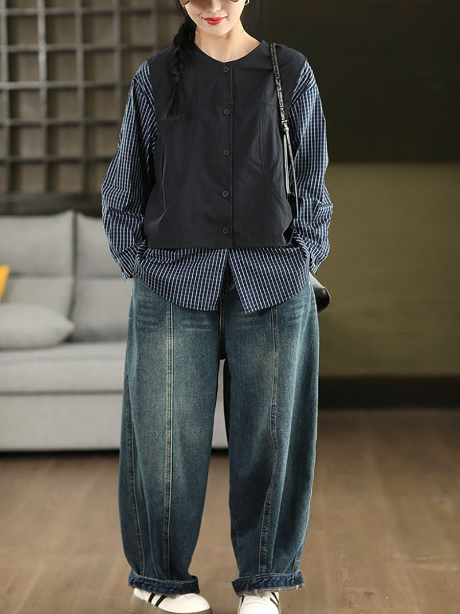 Women Spring Vintage Washed Denim Harem Pants