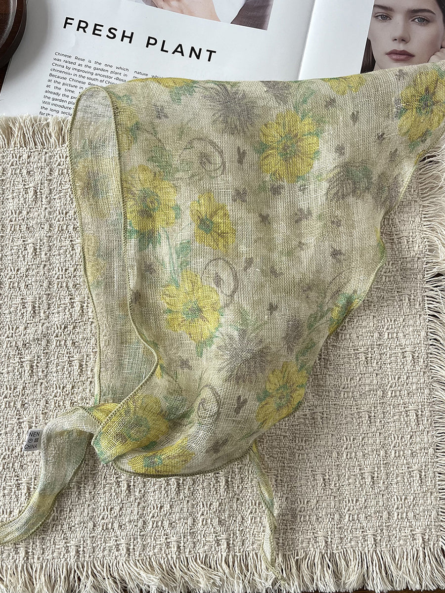 Women Summer Artsy Flower Triangle Scarf