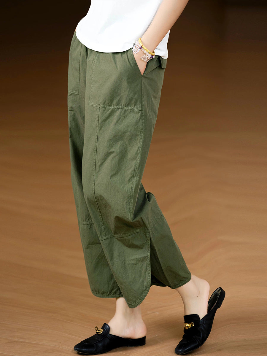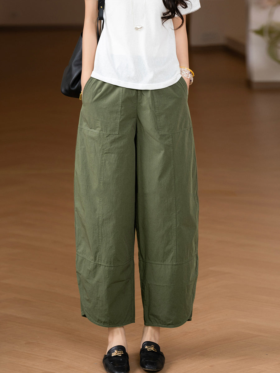 Plus Size Women Summer Casual 100%Cotton Wide-leg Pants