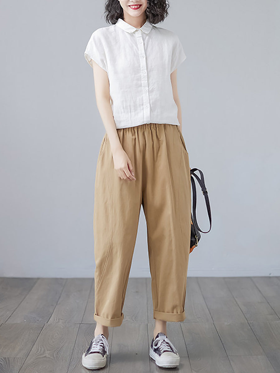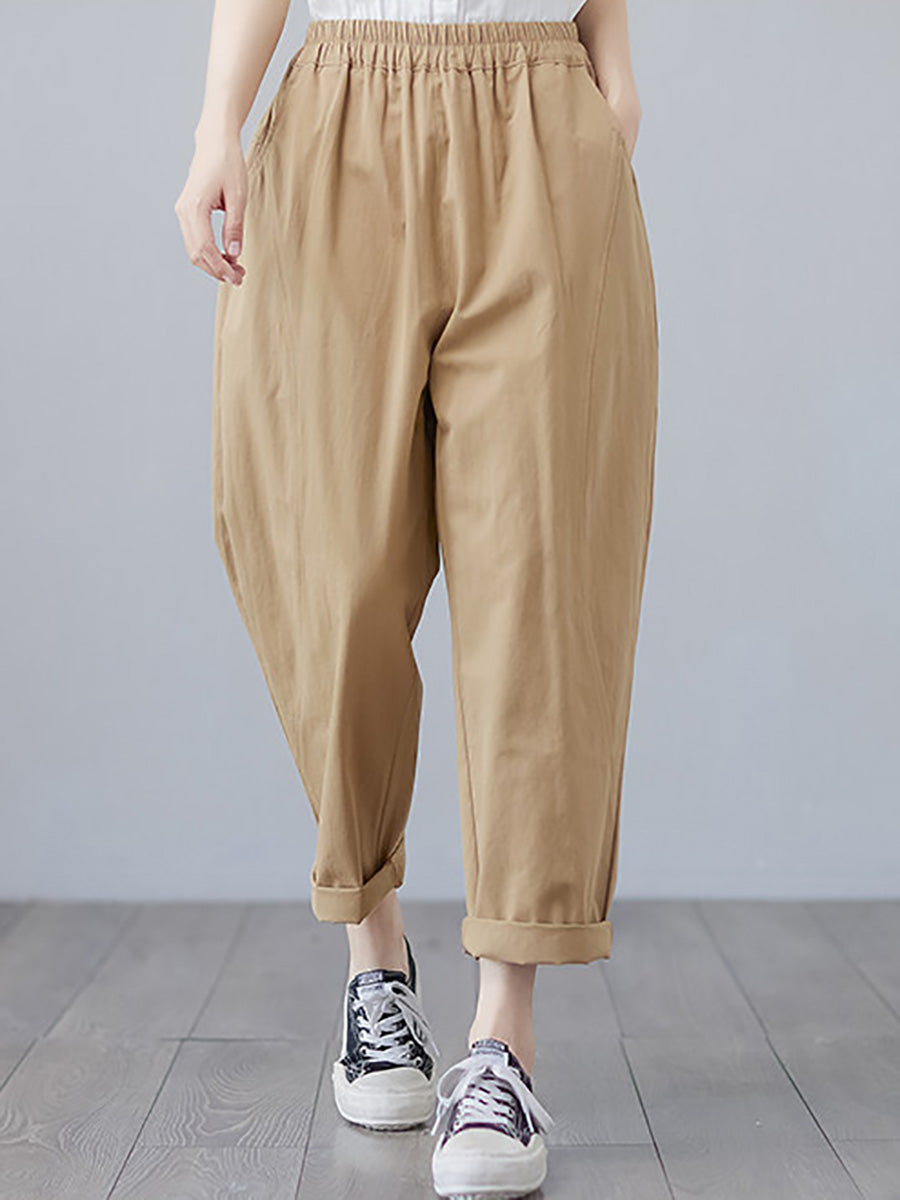 Plus Size Women Summer Casual Pure Color Harem Pants