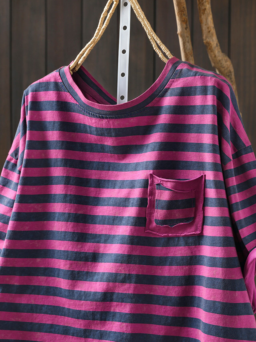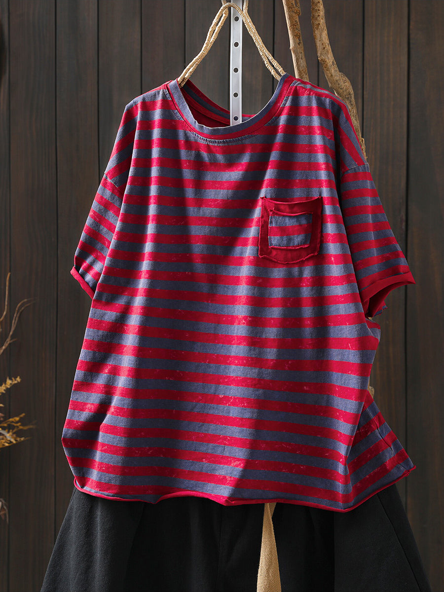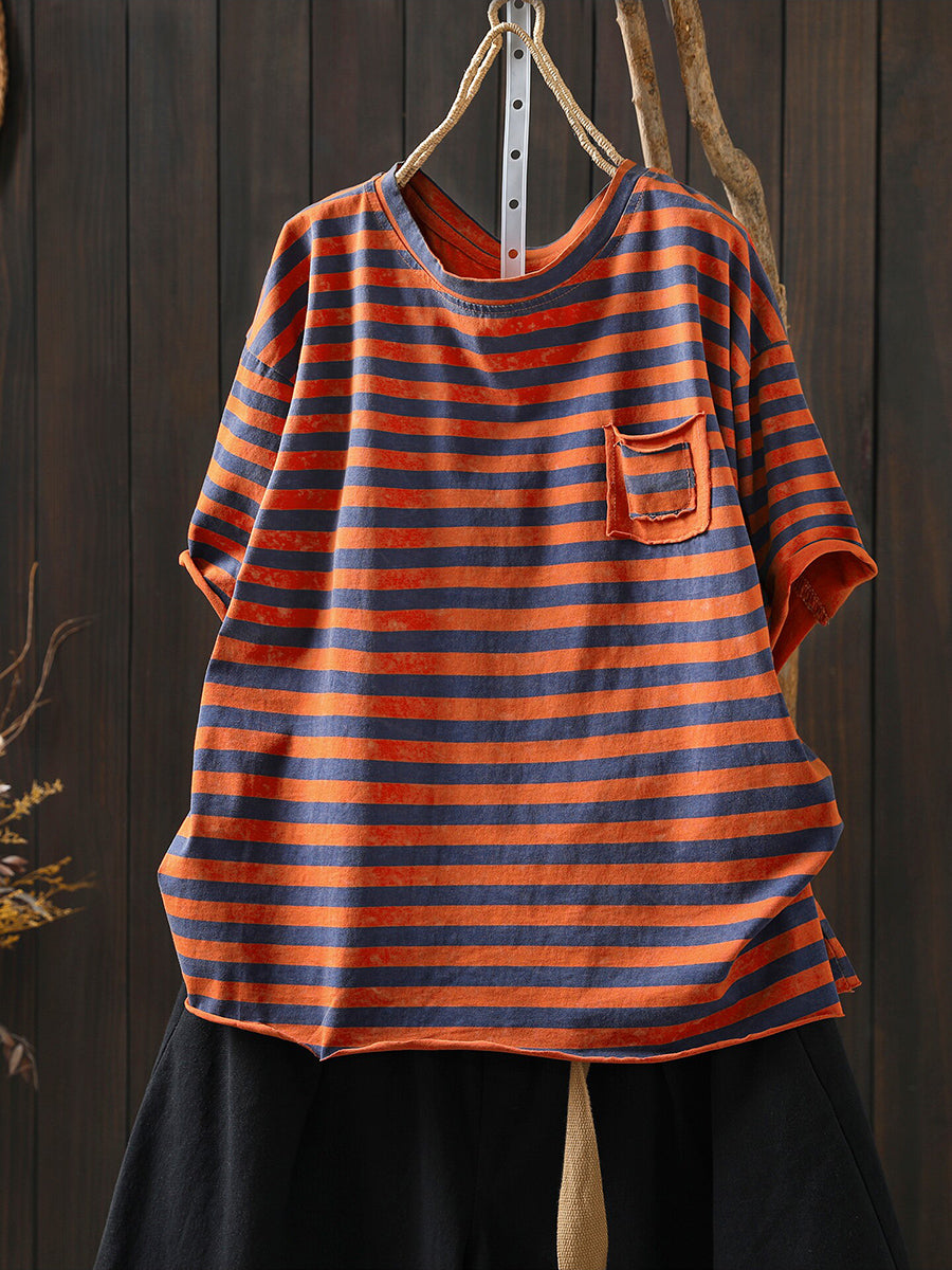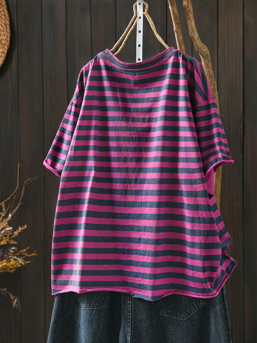 Women Summer Casual Stripe O-Neck T-Shirt