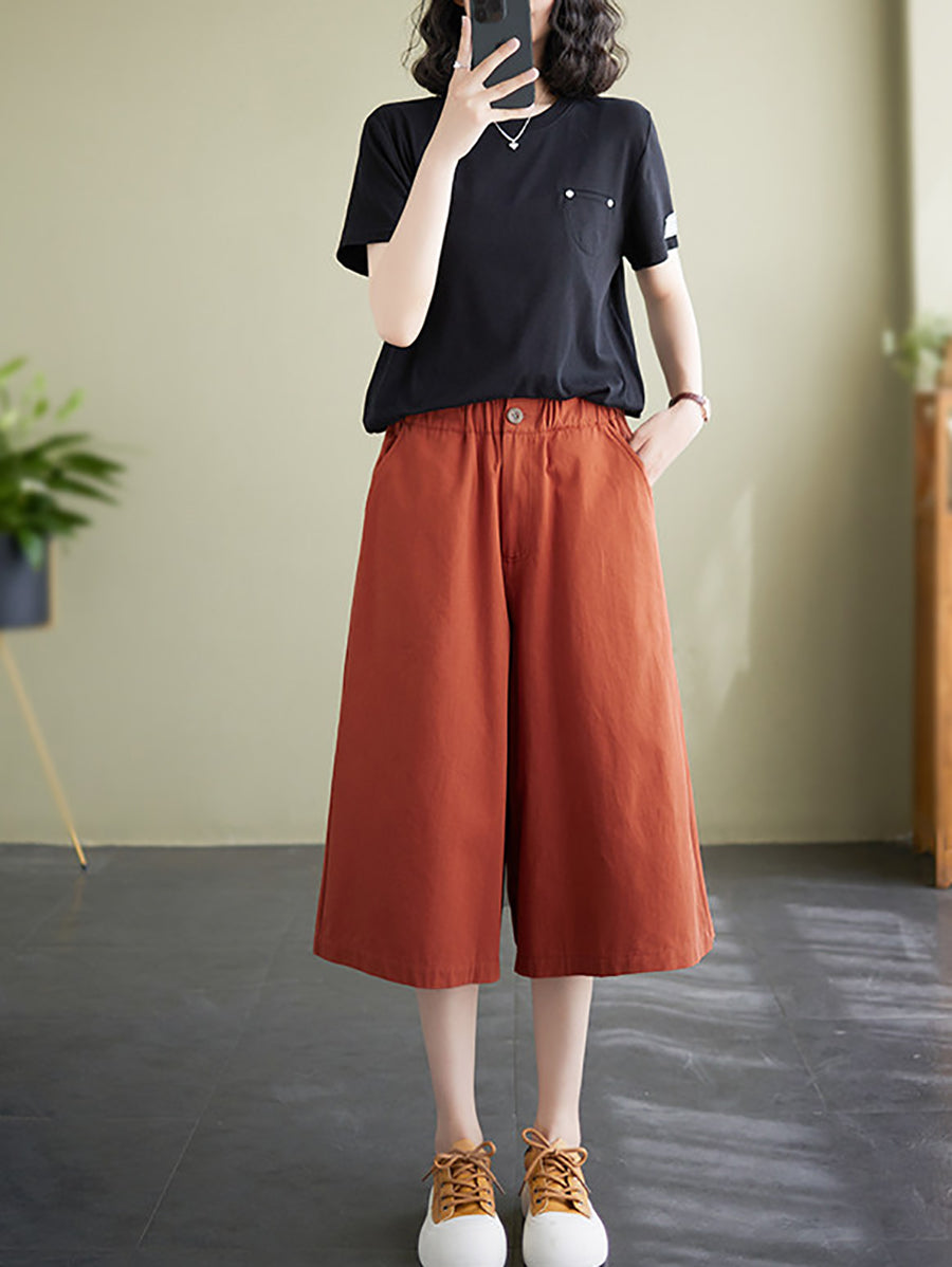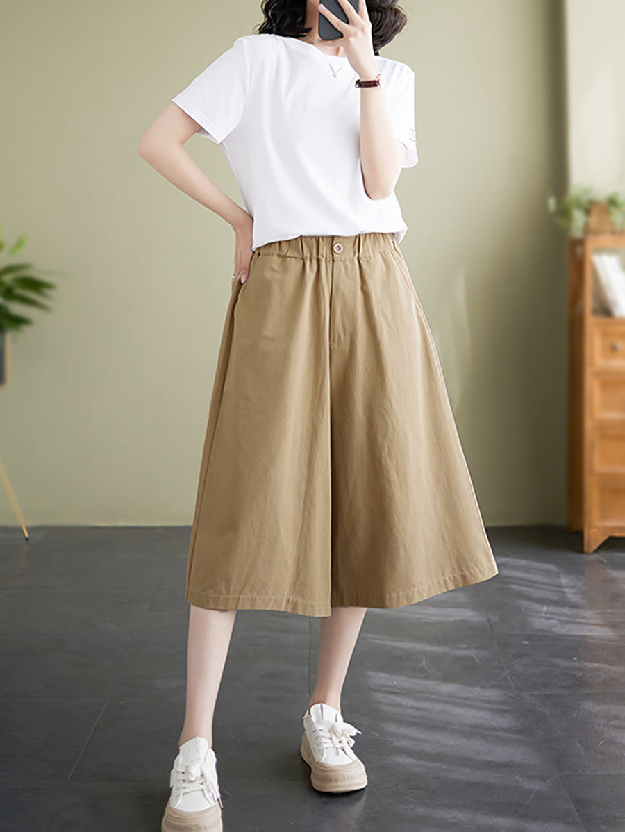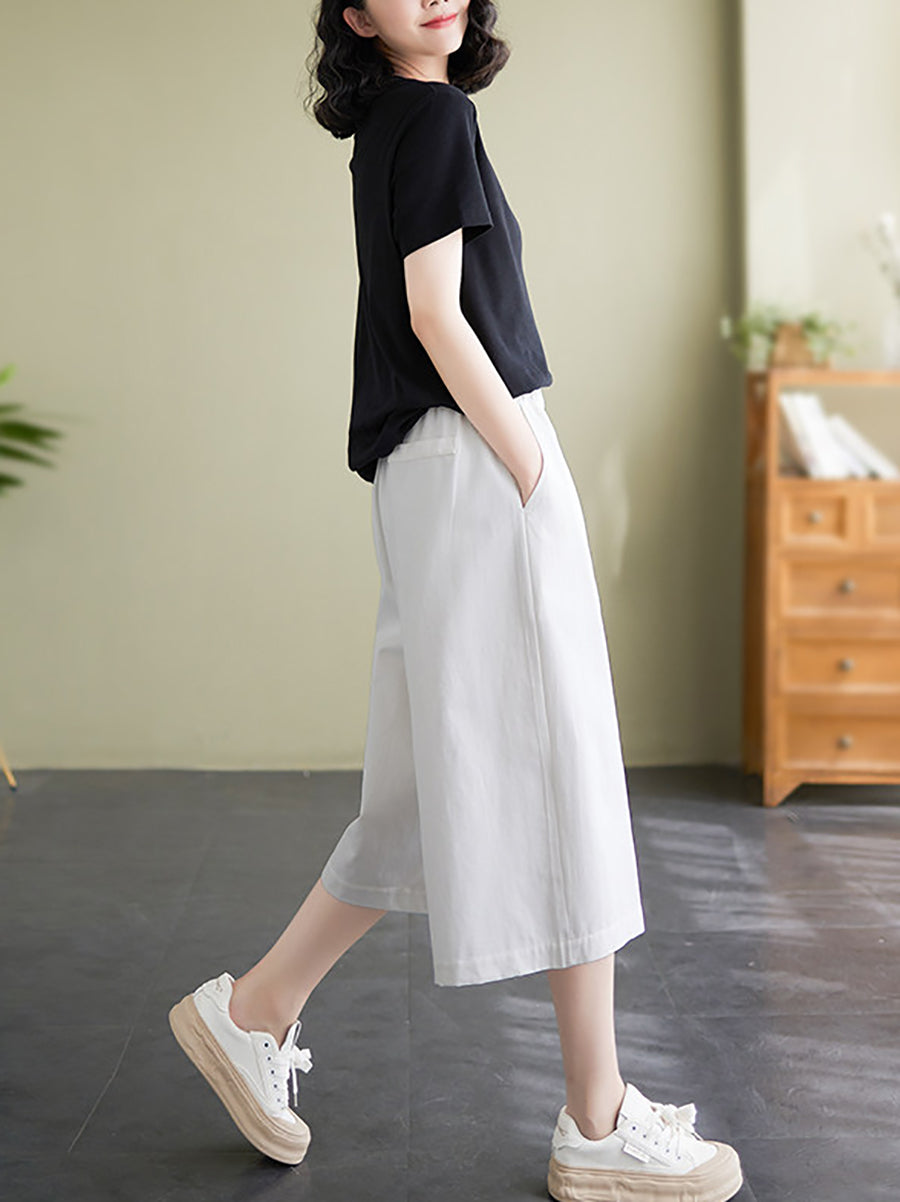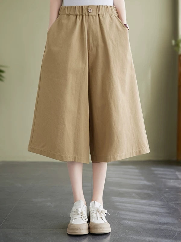Women Summer Casual Wide-leg Capri Trousers