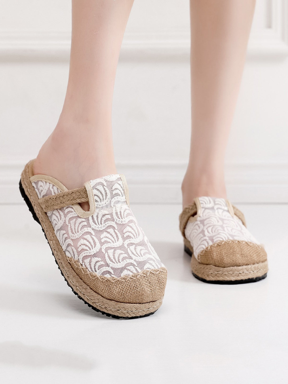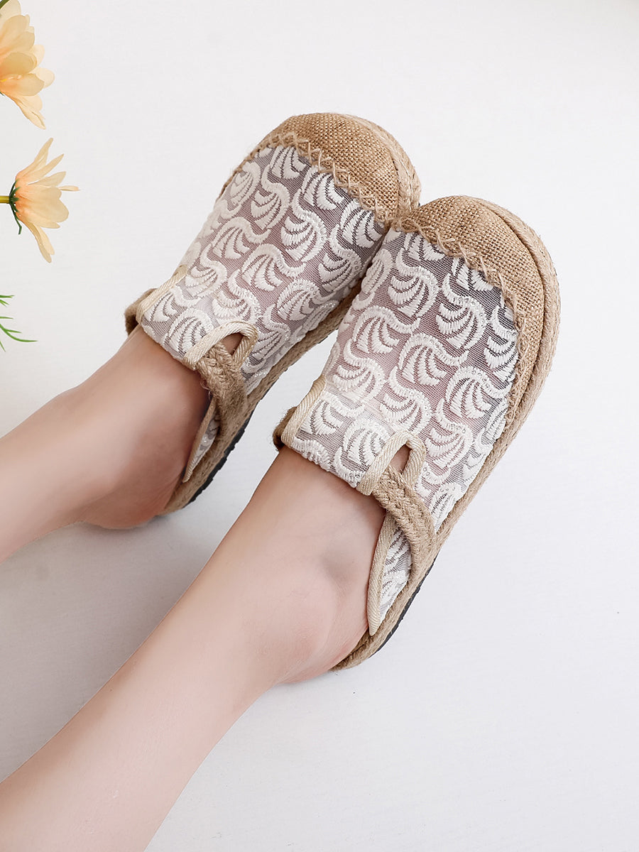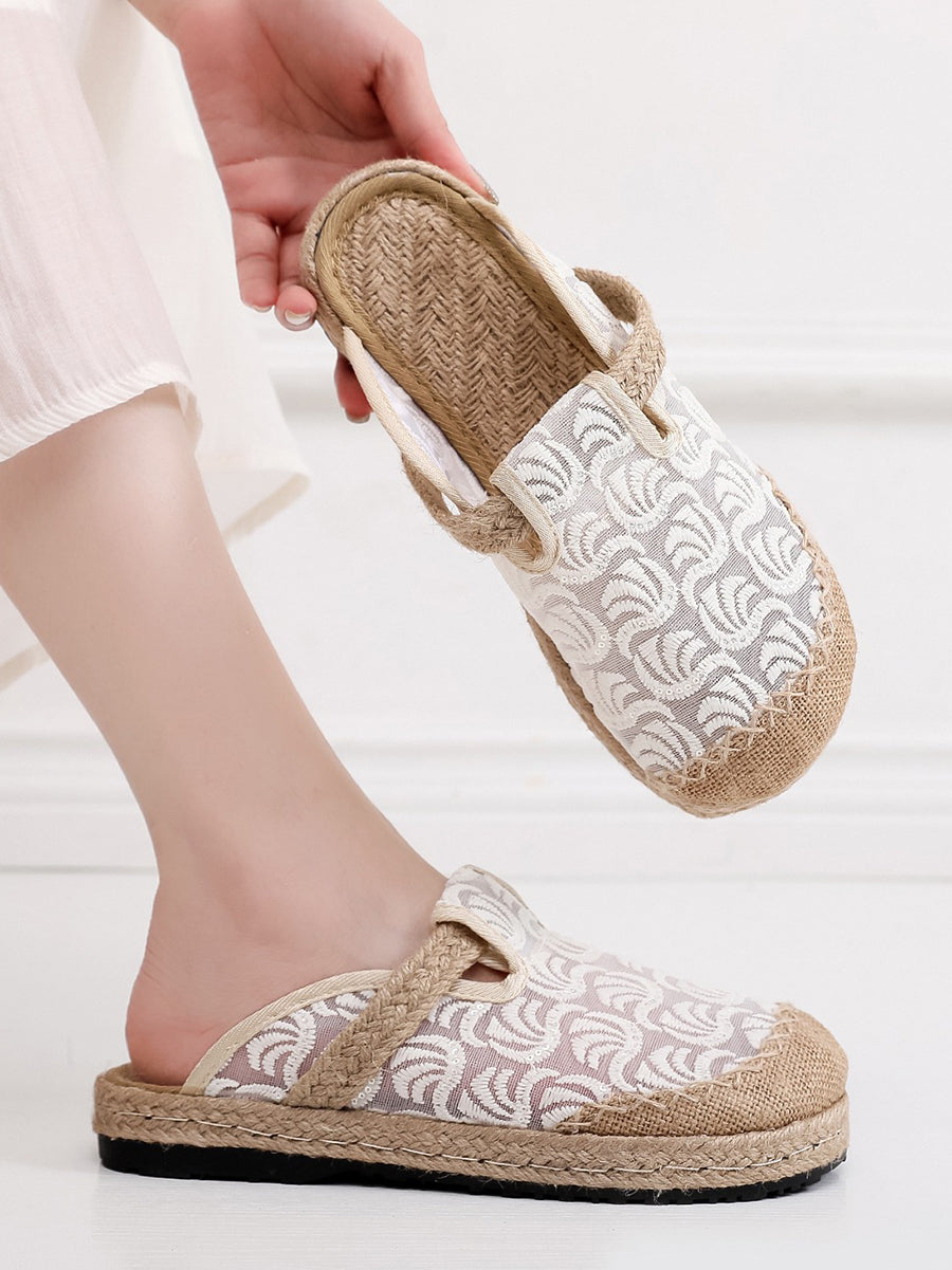 Women Summer Embroidery Linen Slippers