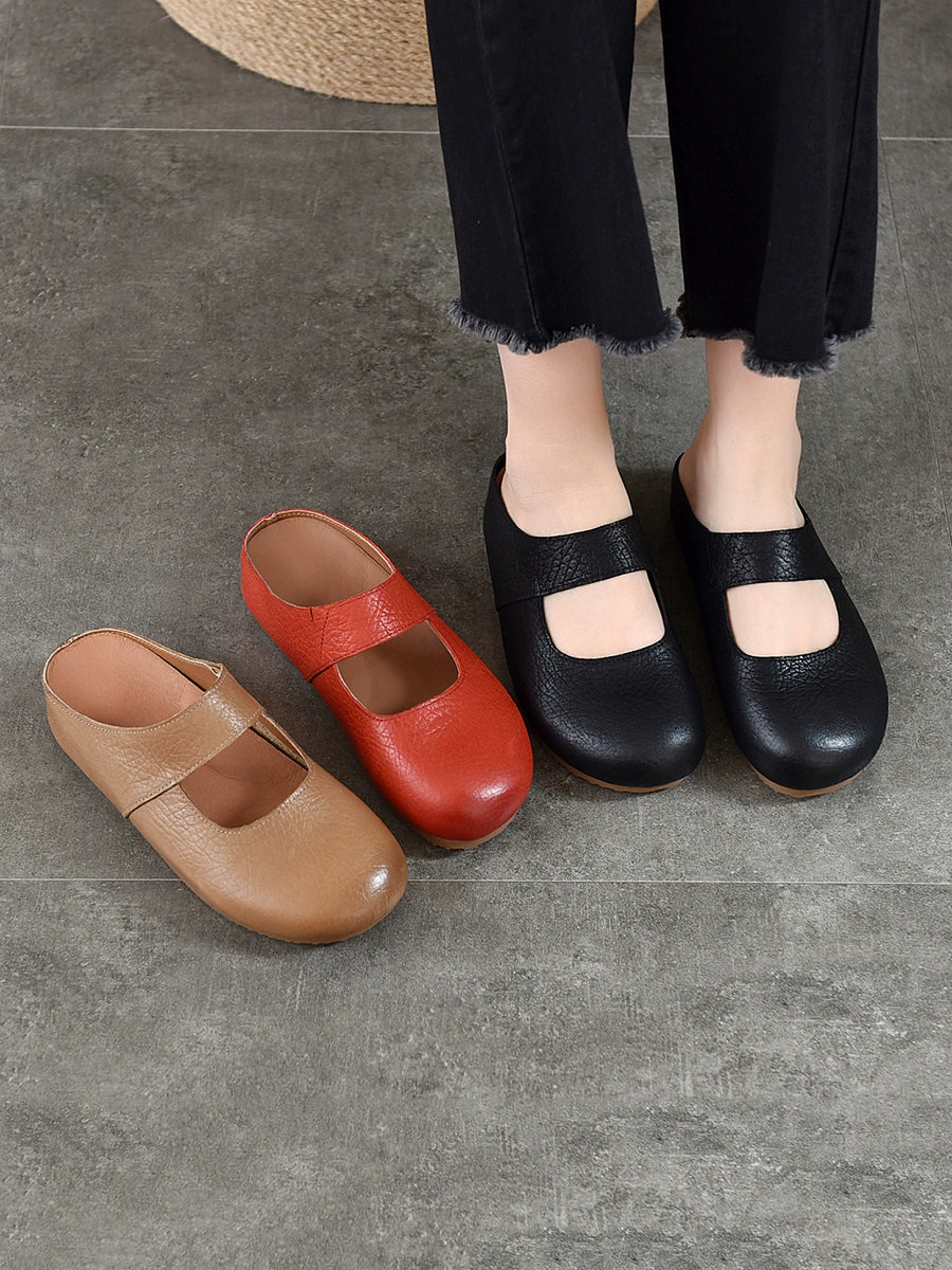 Women Summer Genuine Leather Flat Slippers