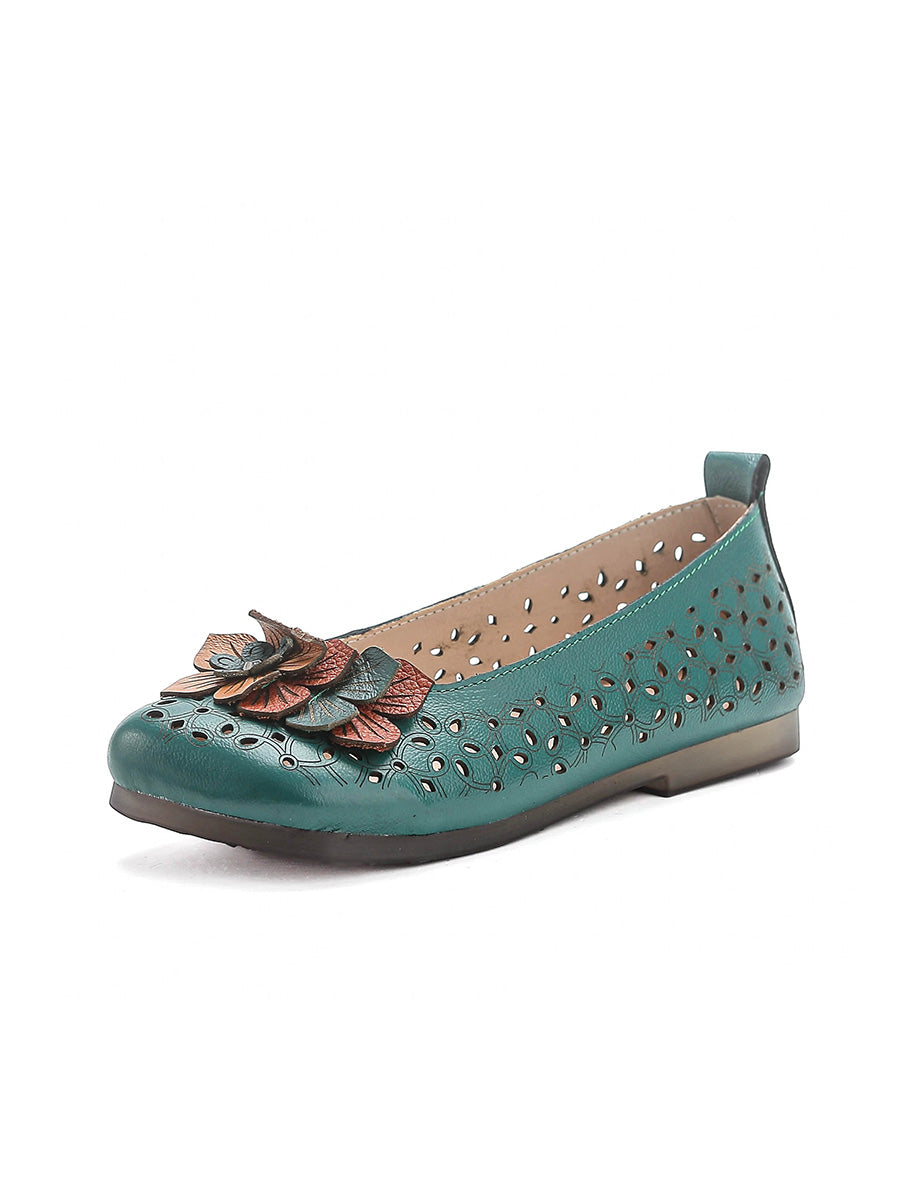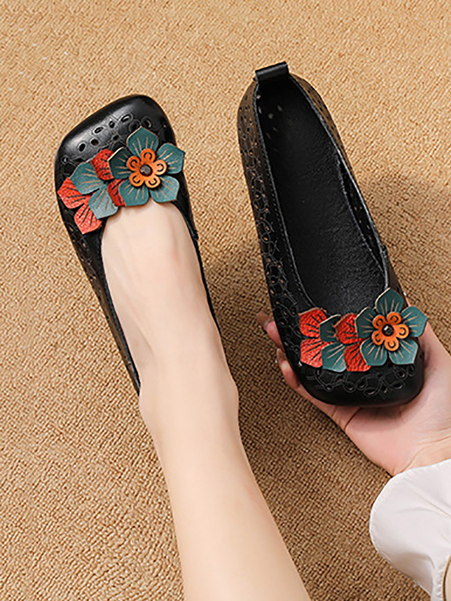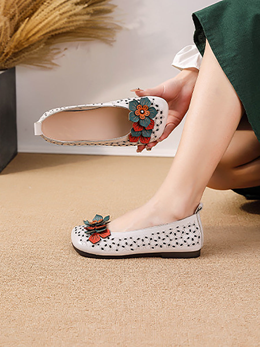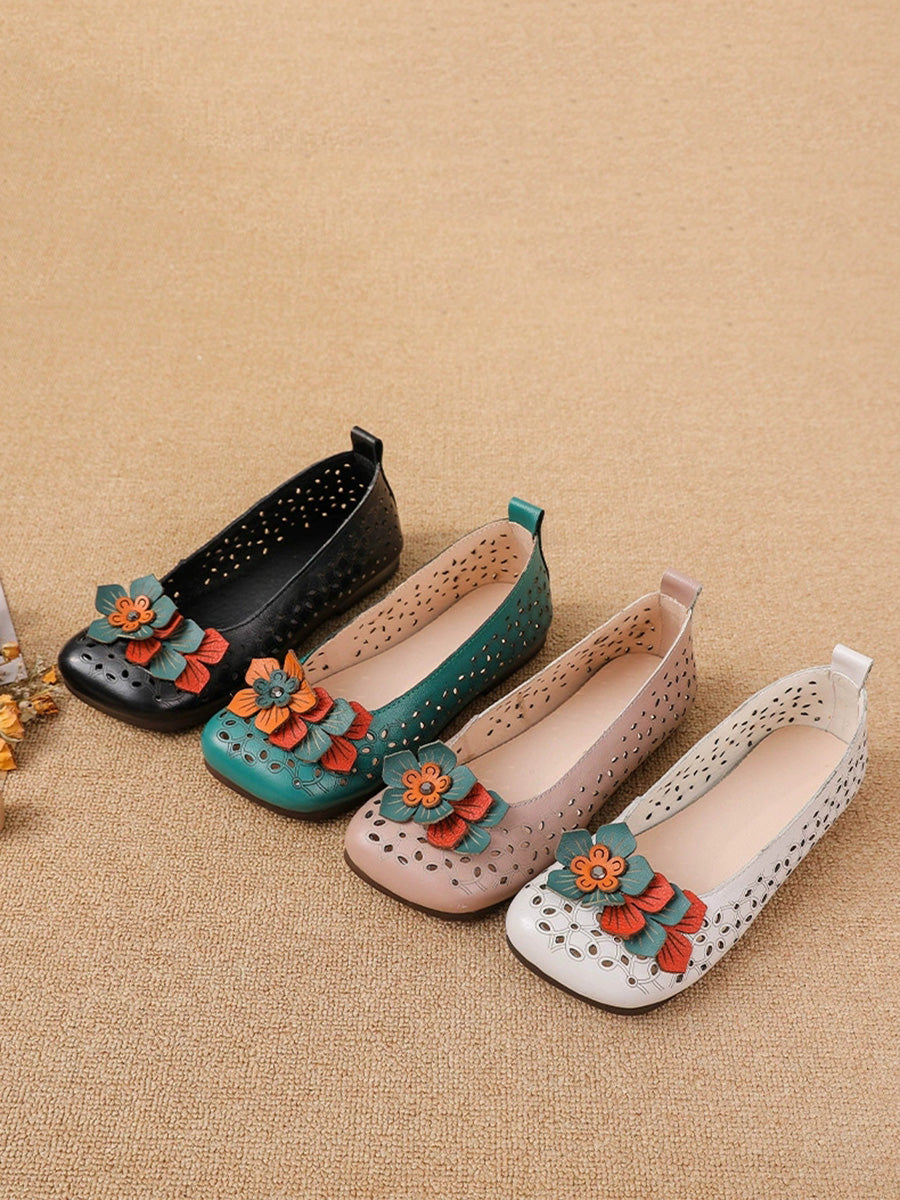 Women Summer Genuine Leather Flower Shoes