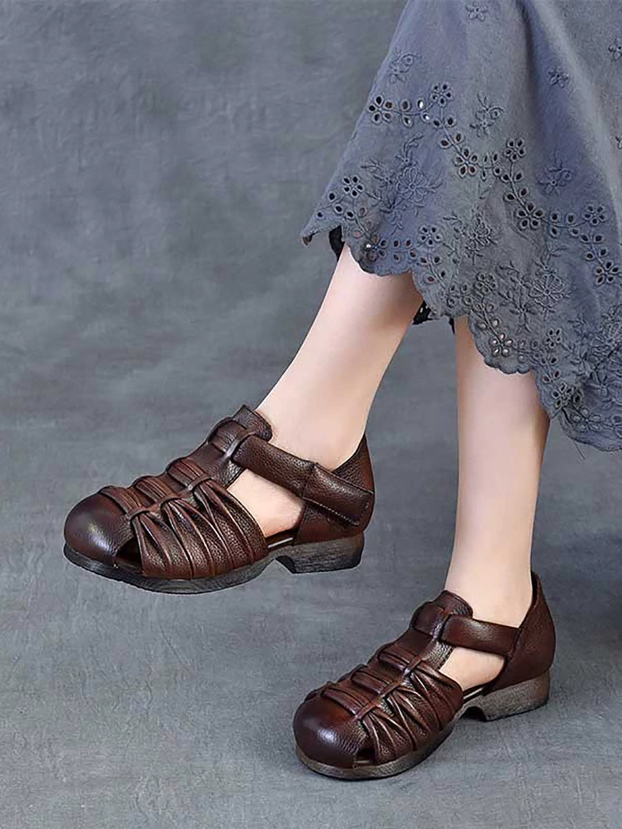 Women Summer Genuine Leather Low Heel Sandals