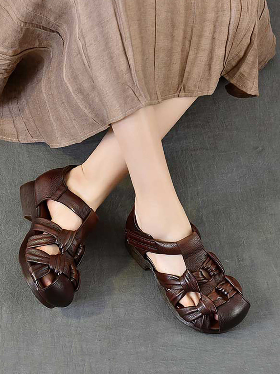 Women Summer Genuine Leather Weave Sandals