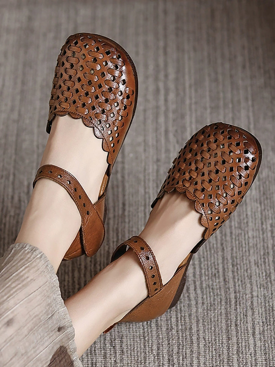Women Summer Genuine Leather Weave Sandals