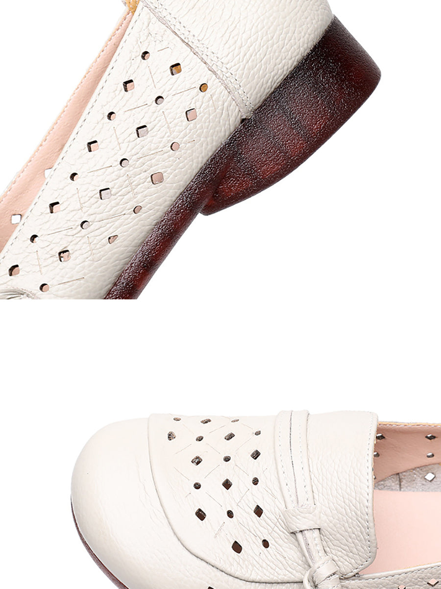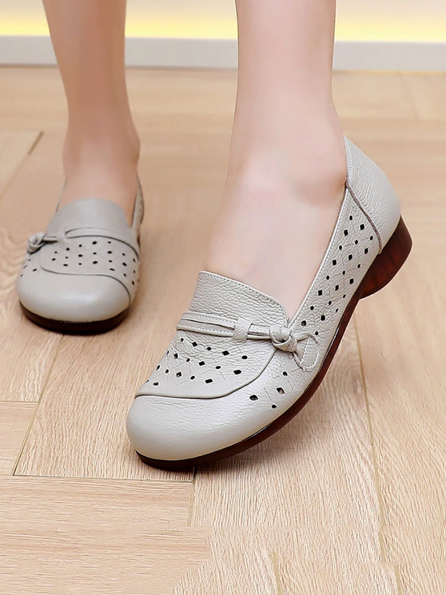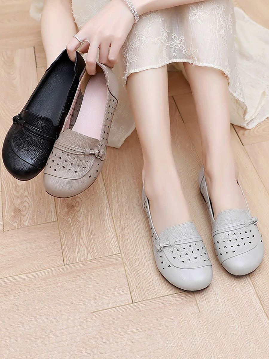 Women Summer Hole Genuine Leather Low Heels Shoes