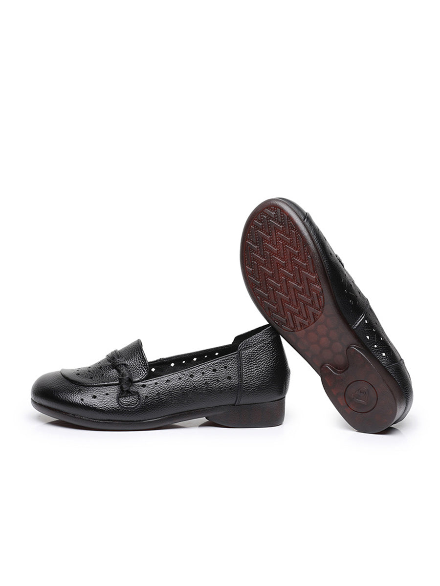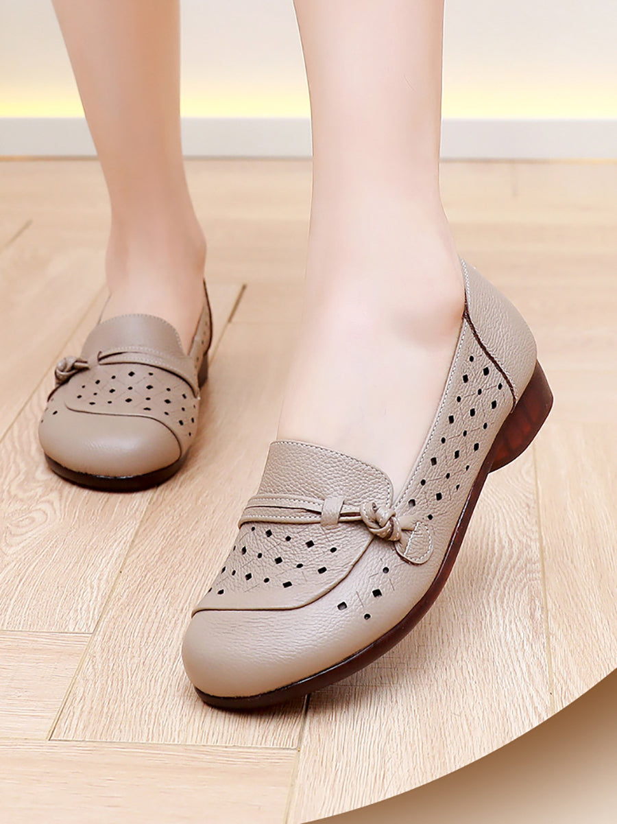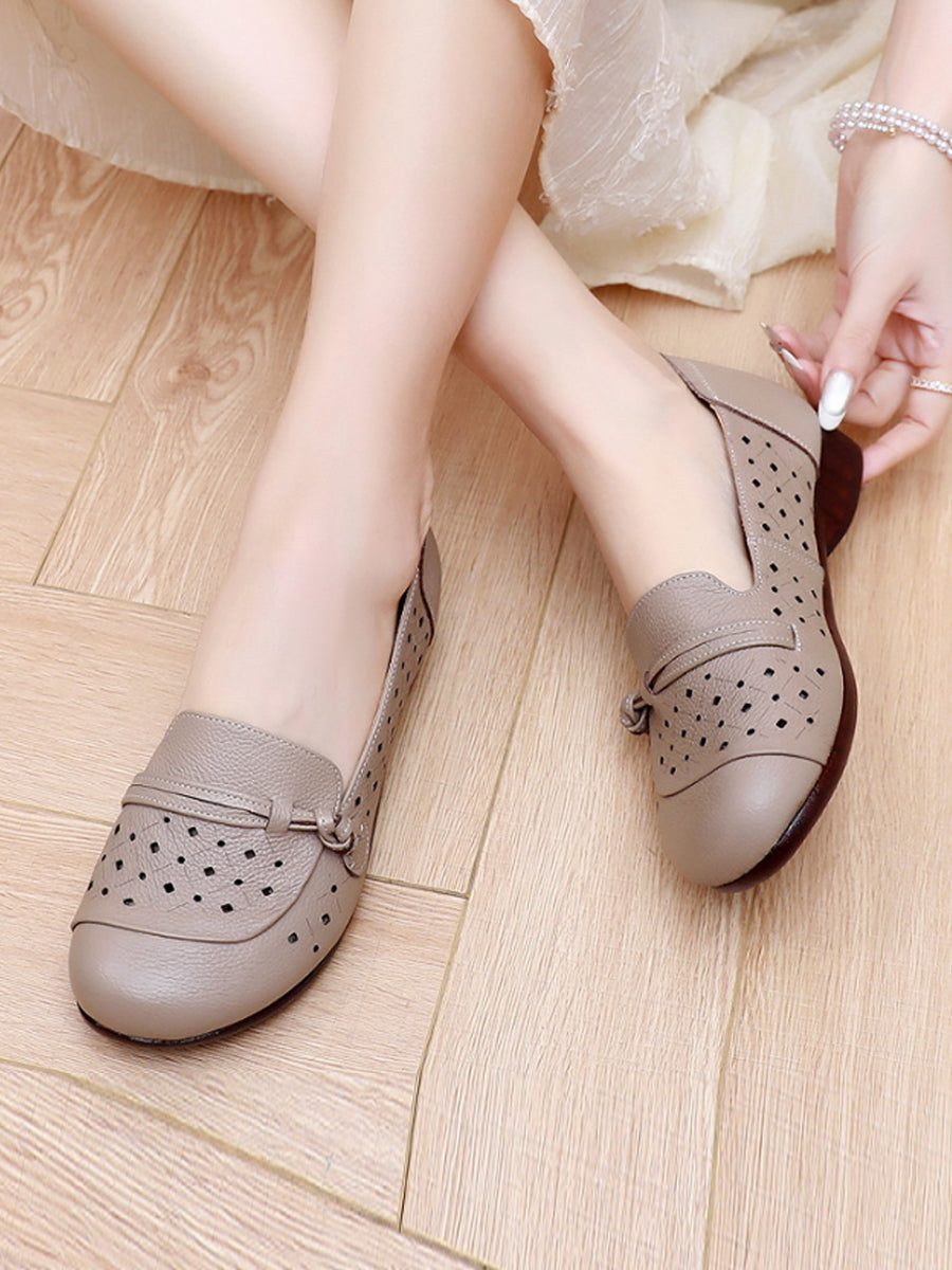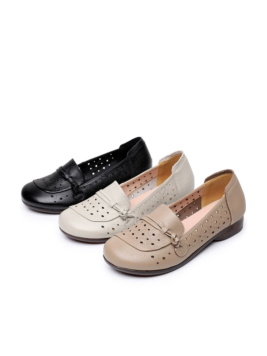 Women Summer Hole Genuine Leather Low Heels Shoes