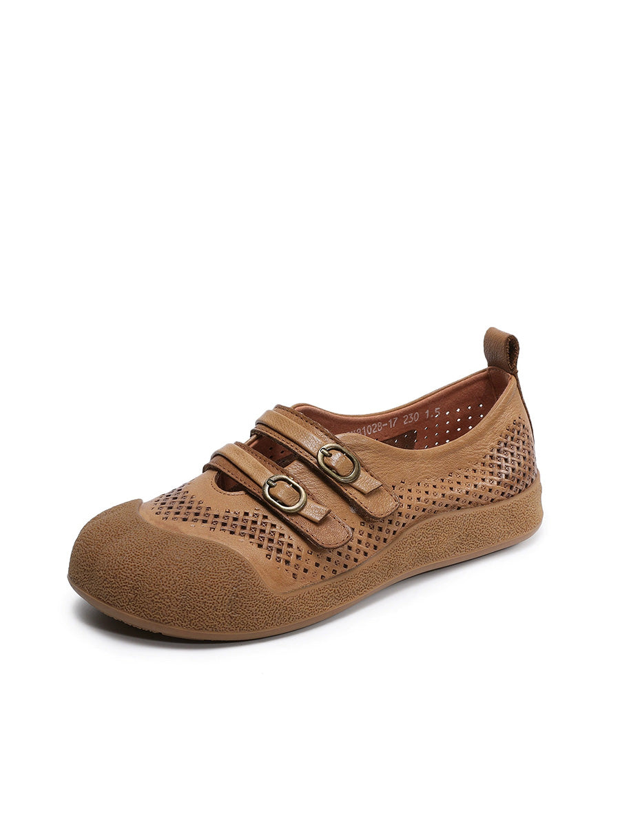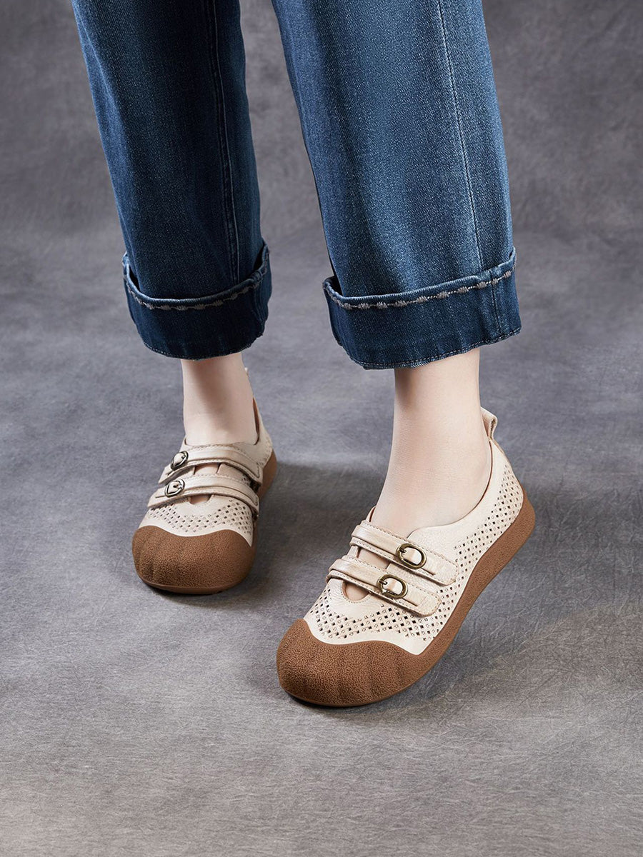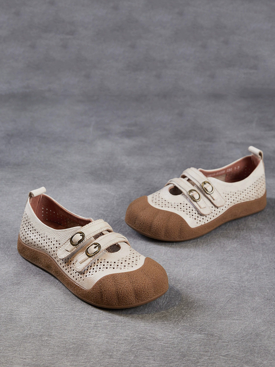 Women Summer Hole Genuine Leather Spliced Sandals