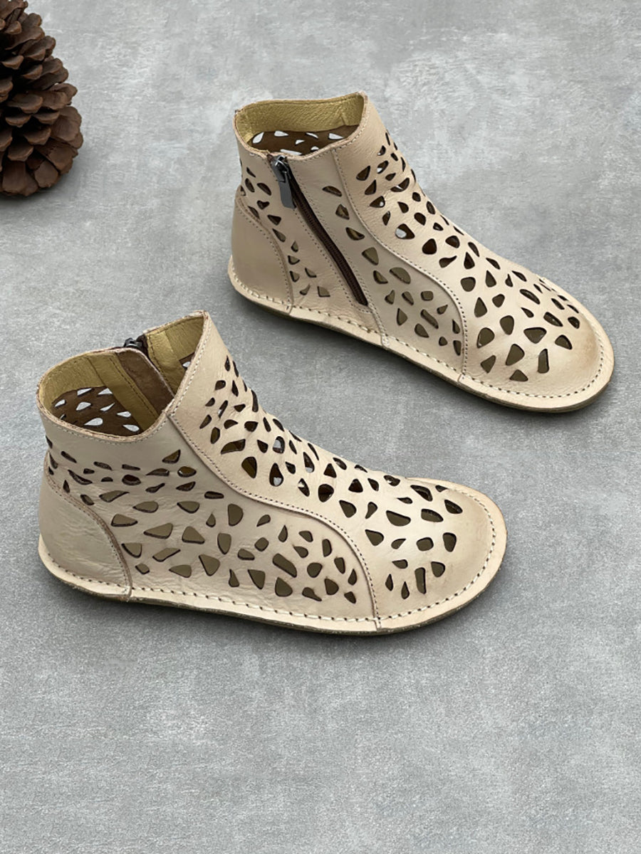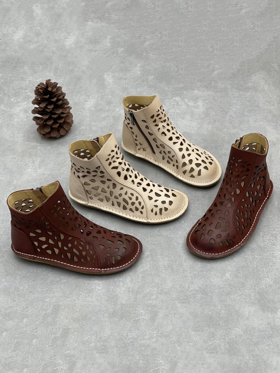 Women Summer Hollow Out Genuine Leather Boots