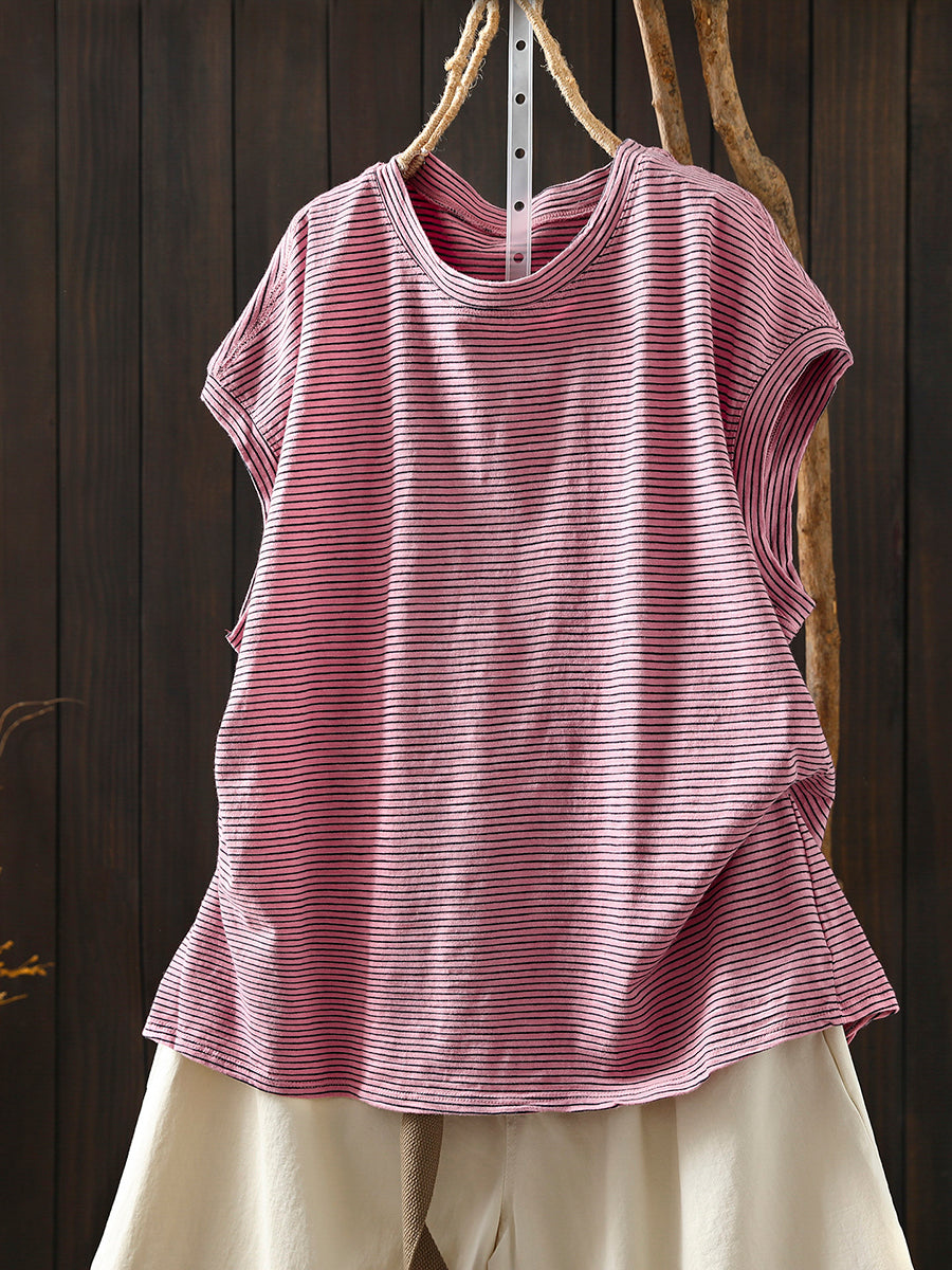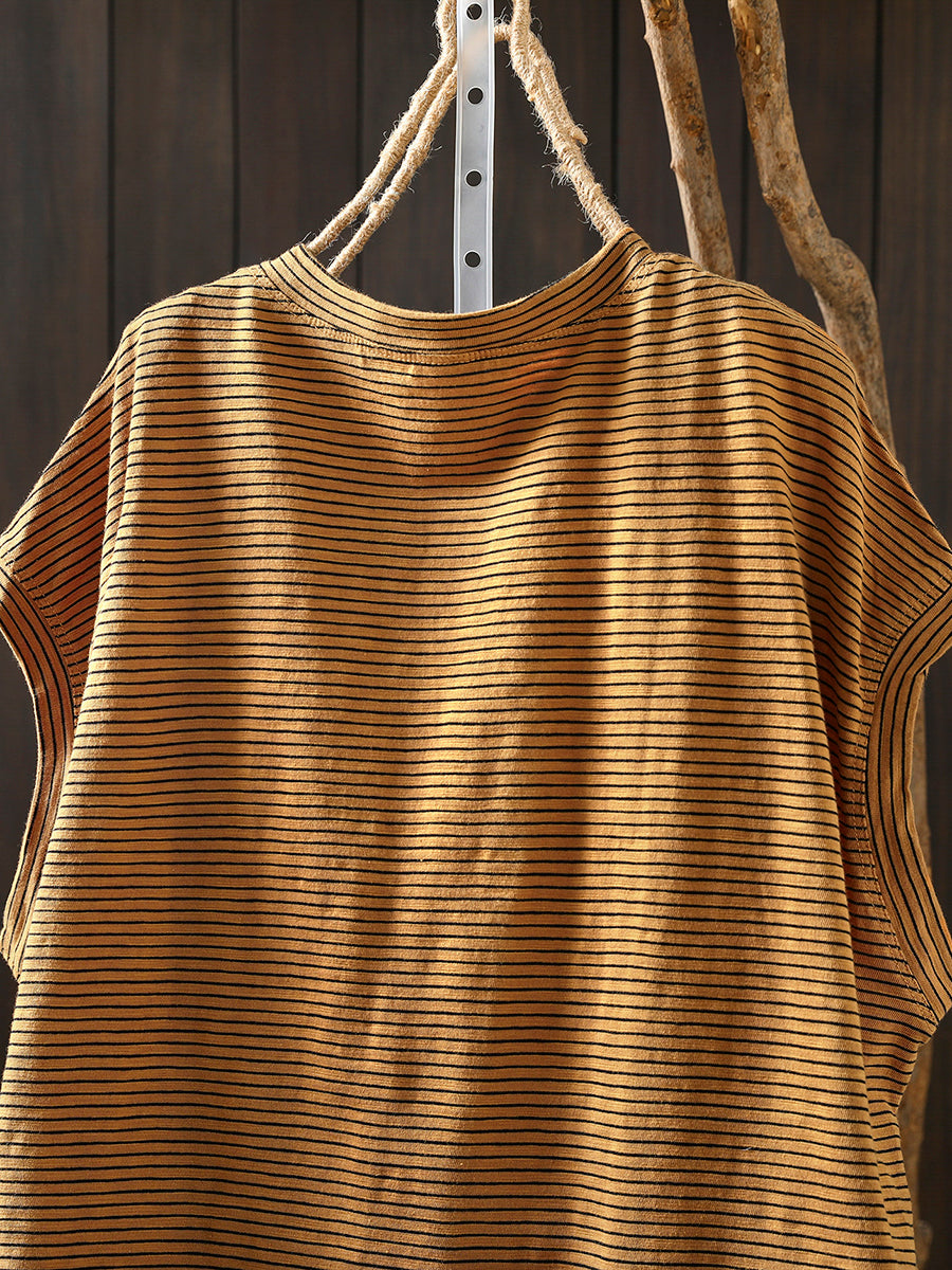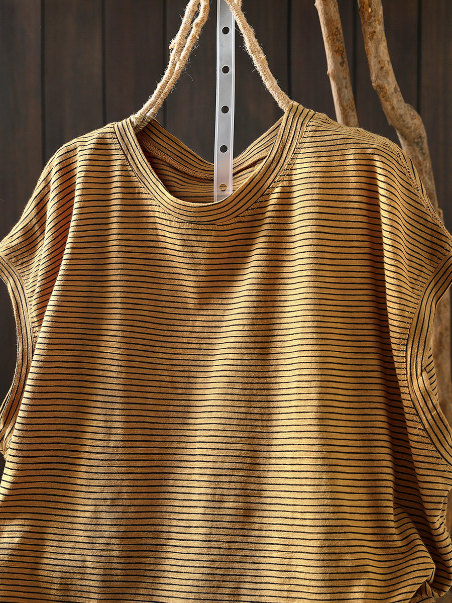 Women Summer Retro Stripe 100%Cotton T-Shirt
