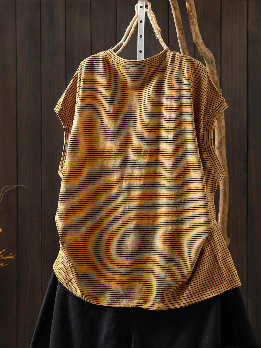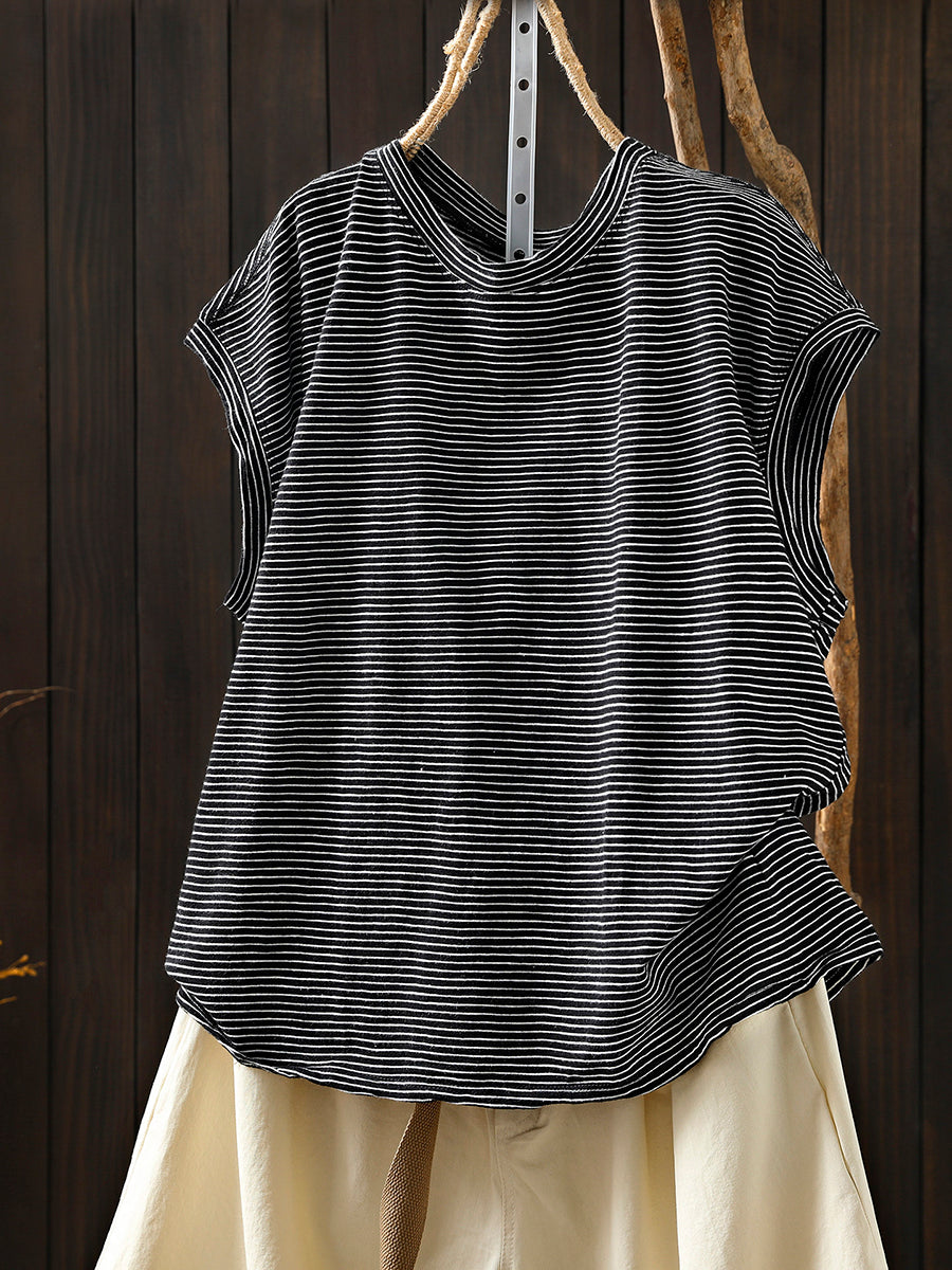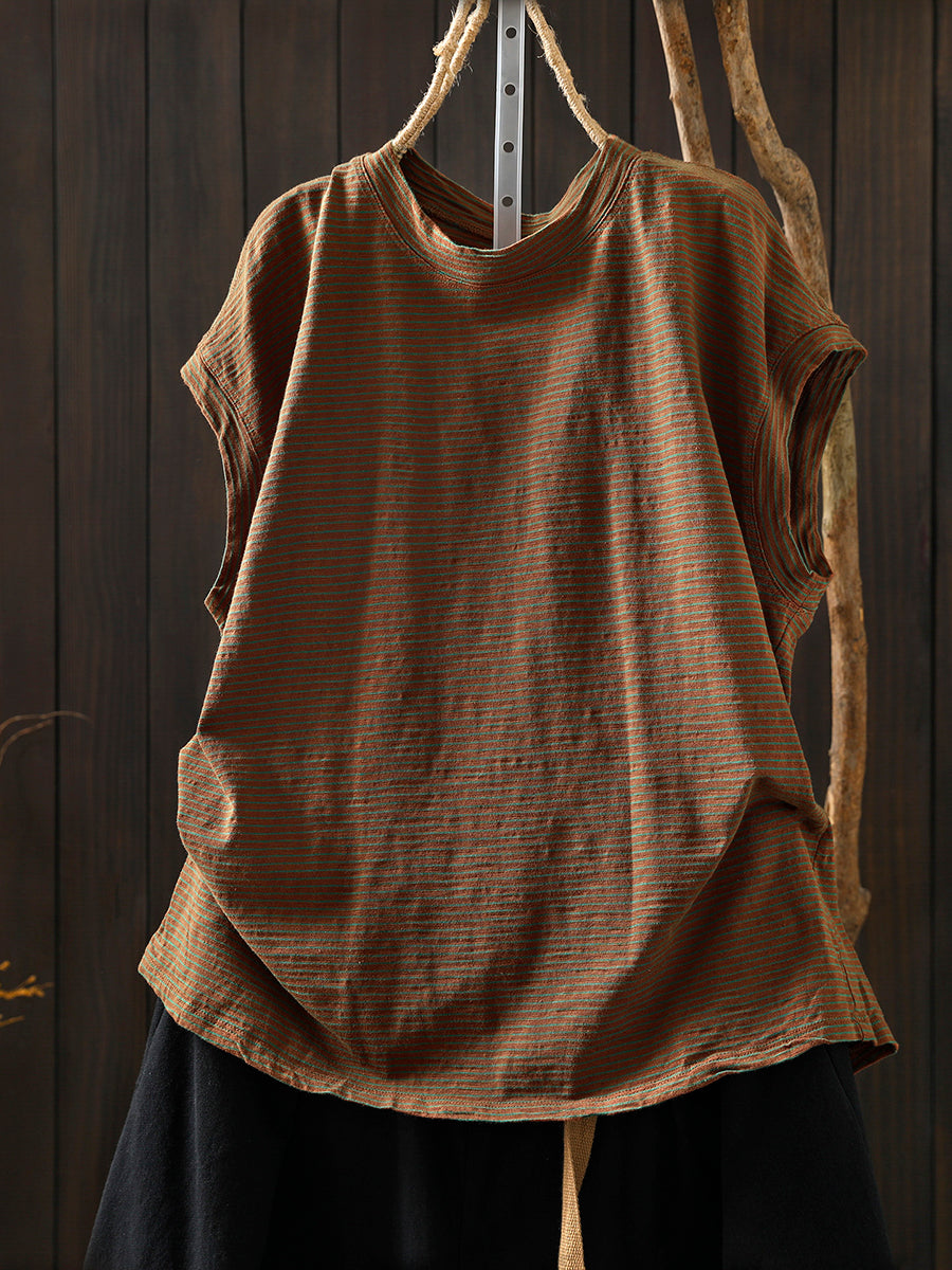 Women Summer Retro Stripe 100%Cotton T-Shirt