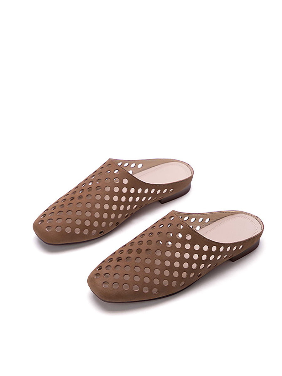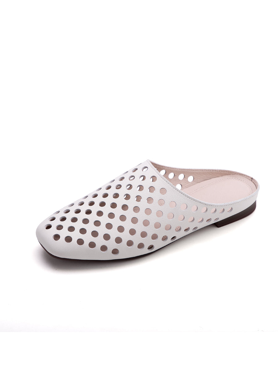 Women Summer Versatile Hole Genuine Leather Slippers