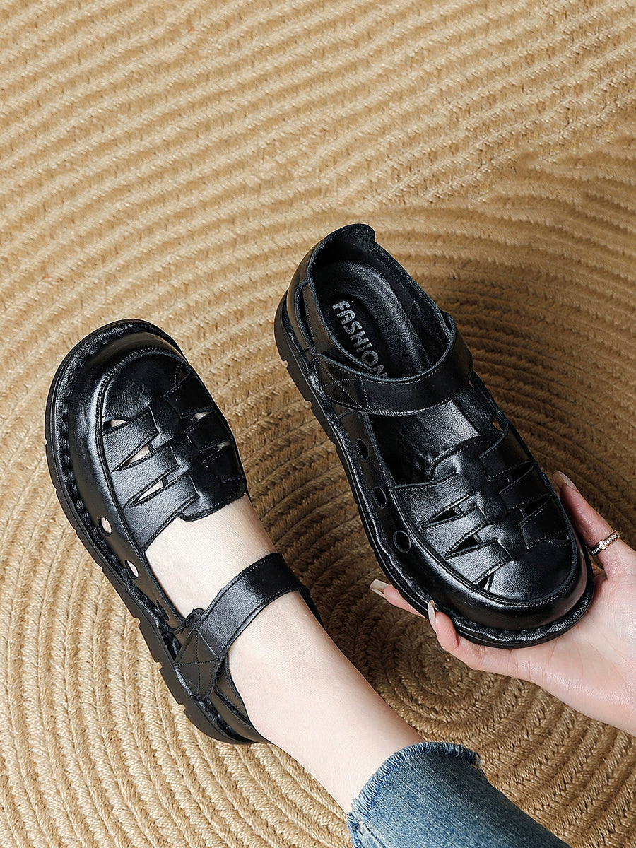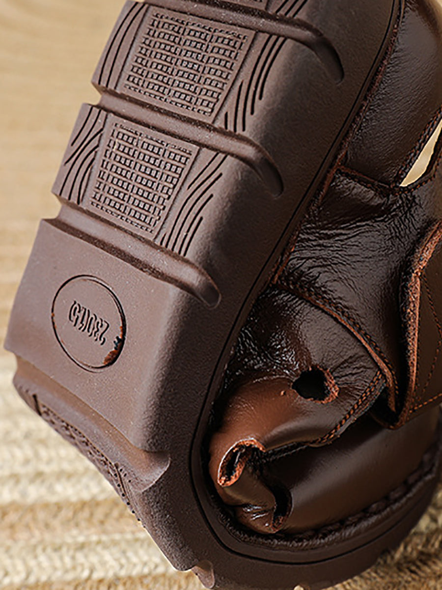 Women Summer Vintage Genuine Leather Flat Shoes