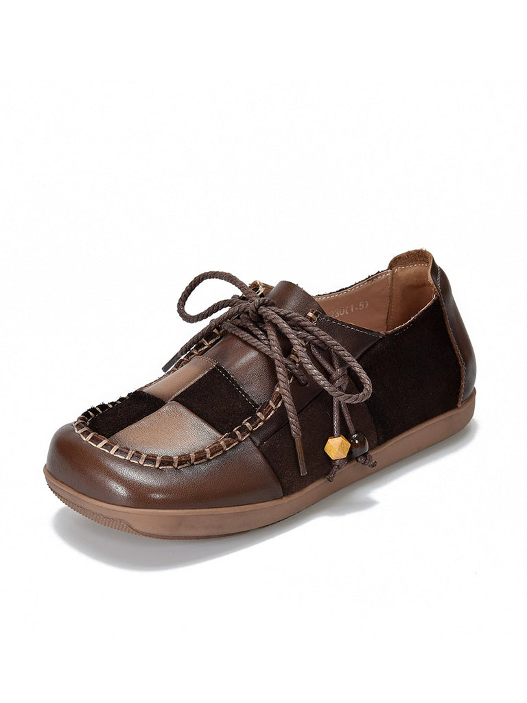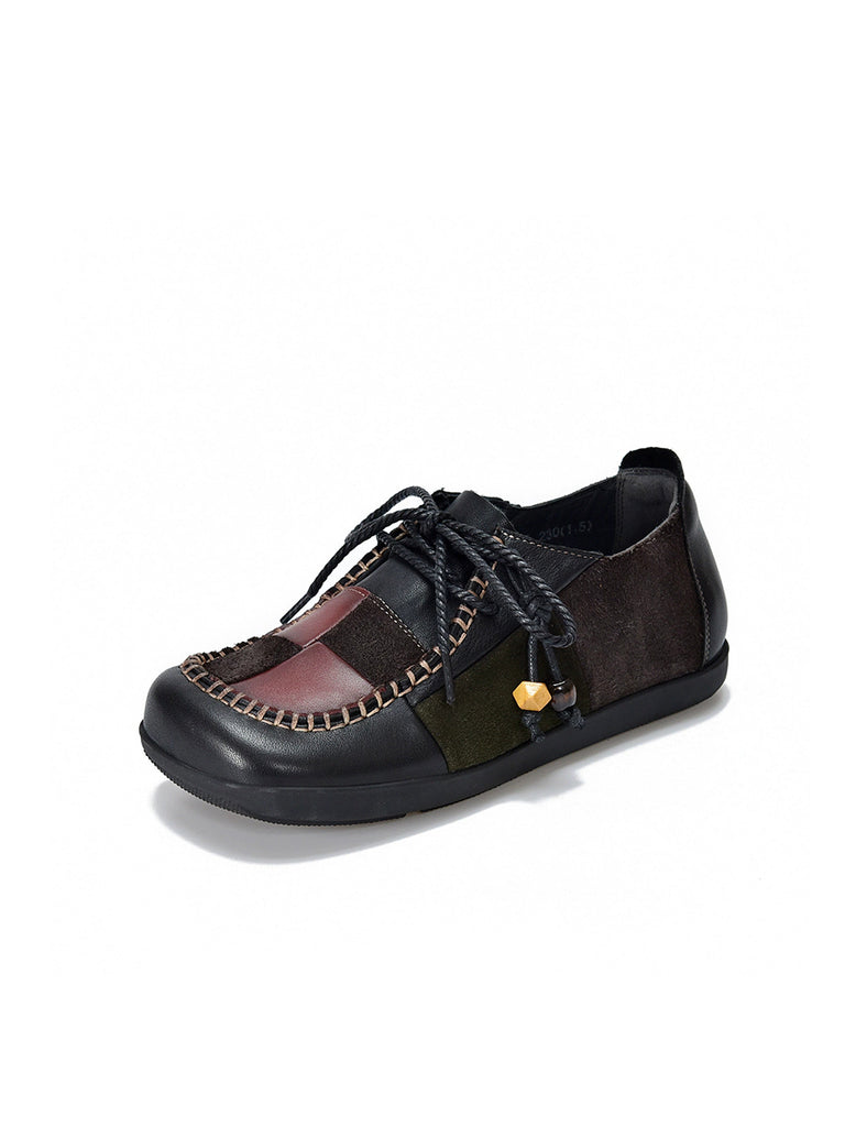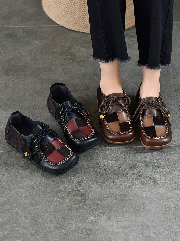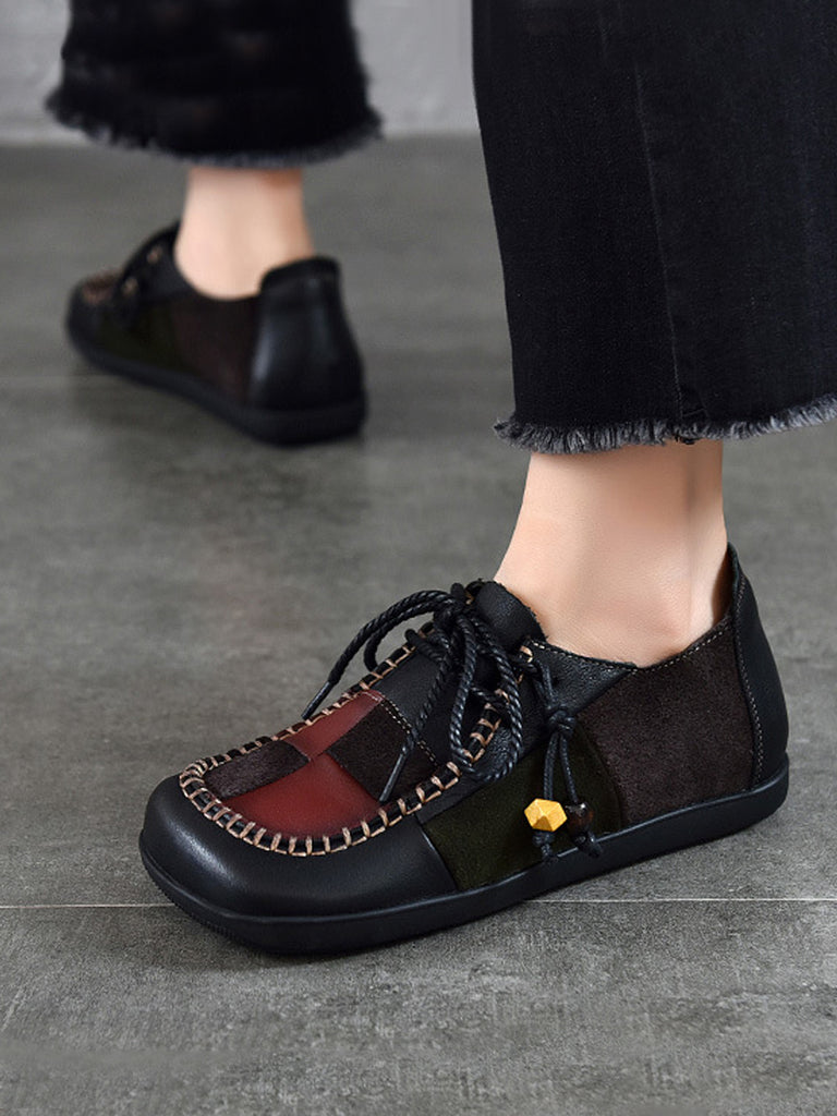 Women Vintage Colorblock Leather Strap Flat Shoes