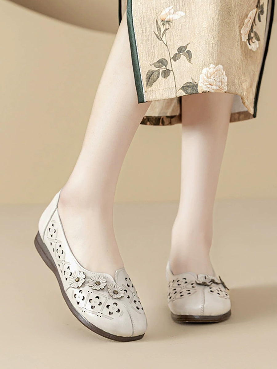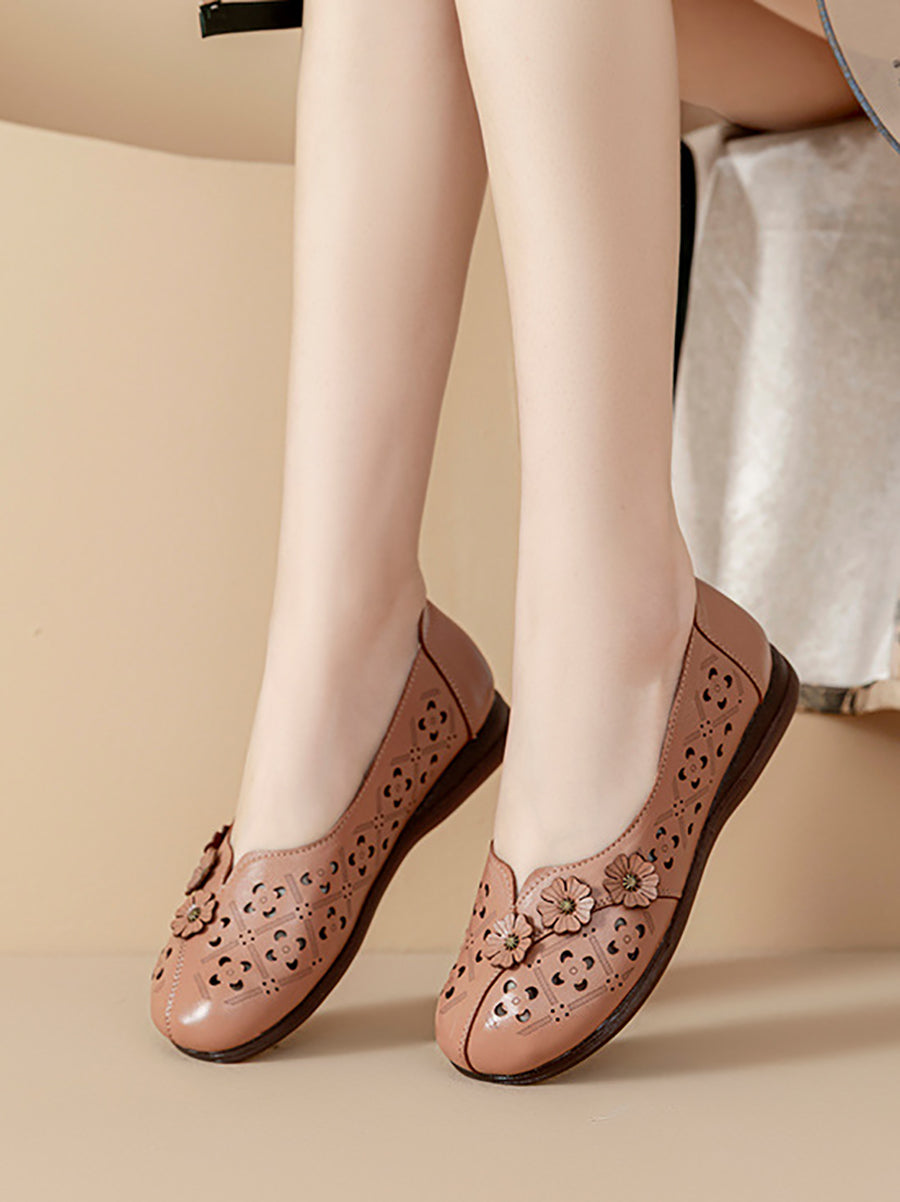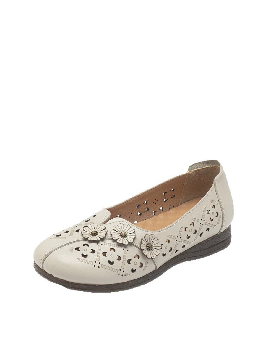 Women Vintage Flower Genuine Leather Sandals
