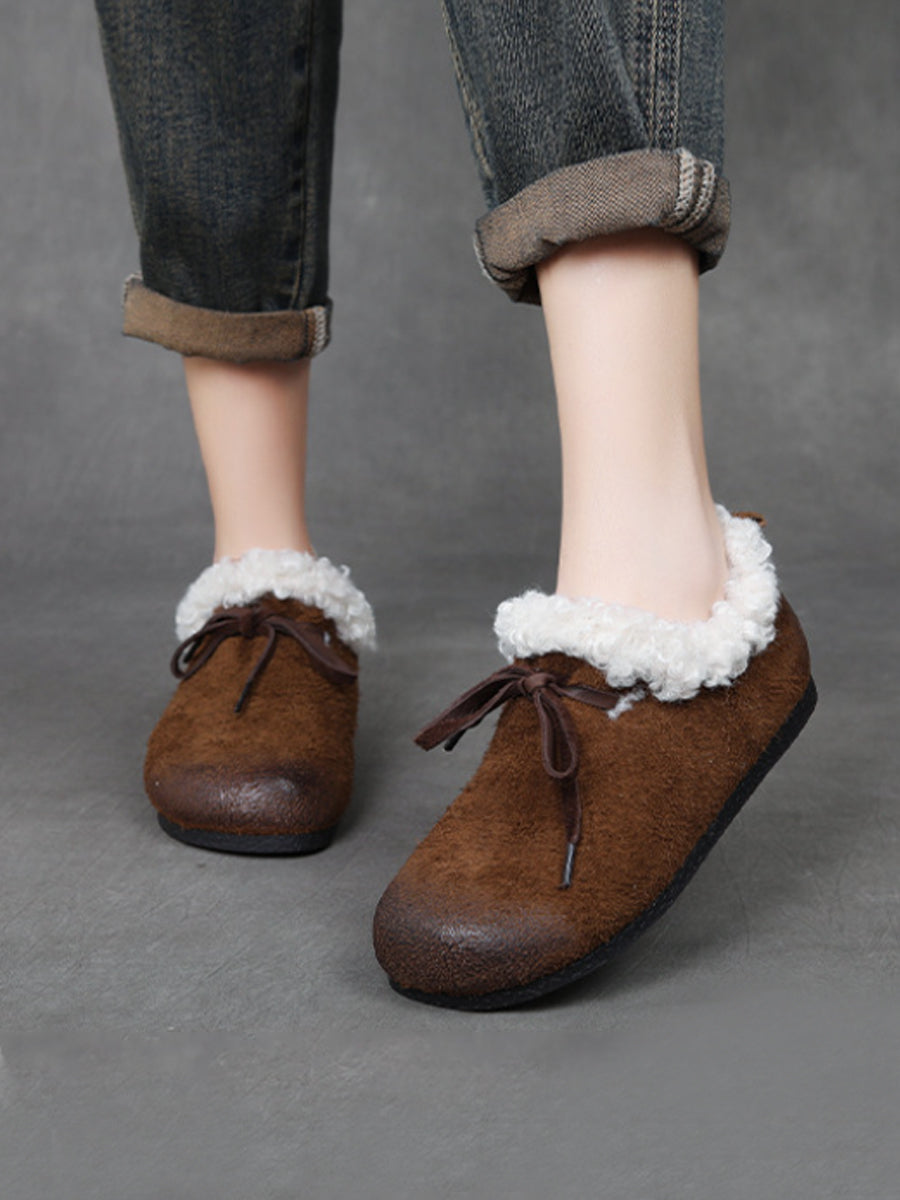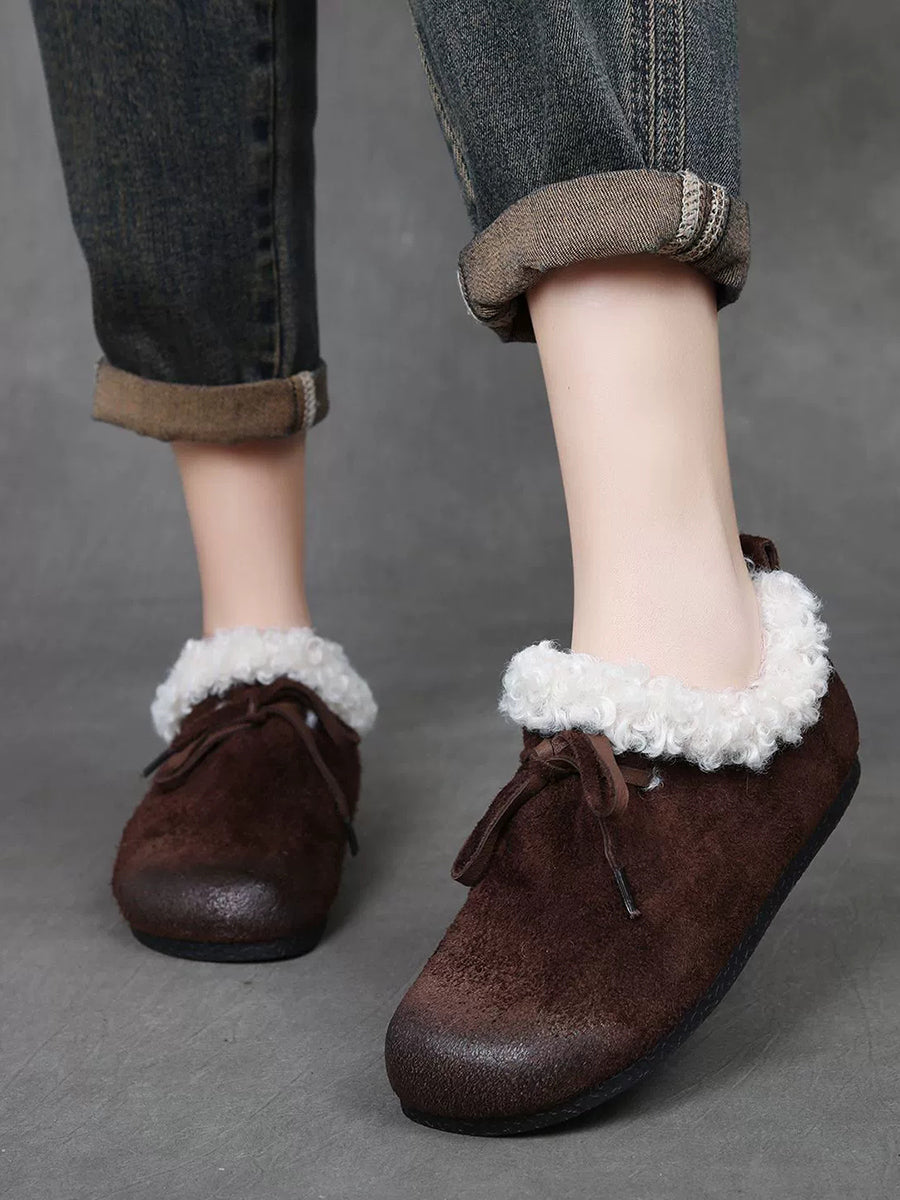 Women Vintage Genuine Leather Fleece-lined Shoes