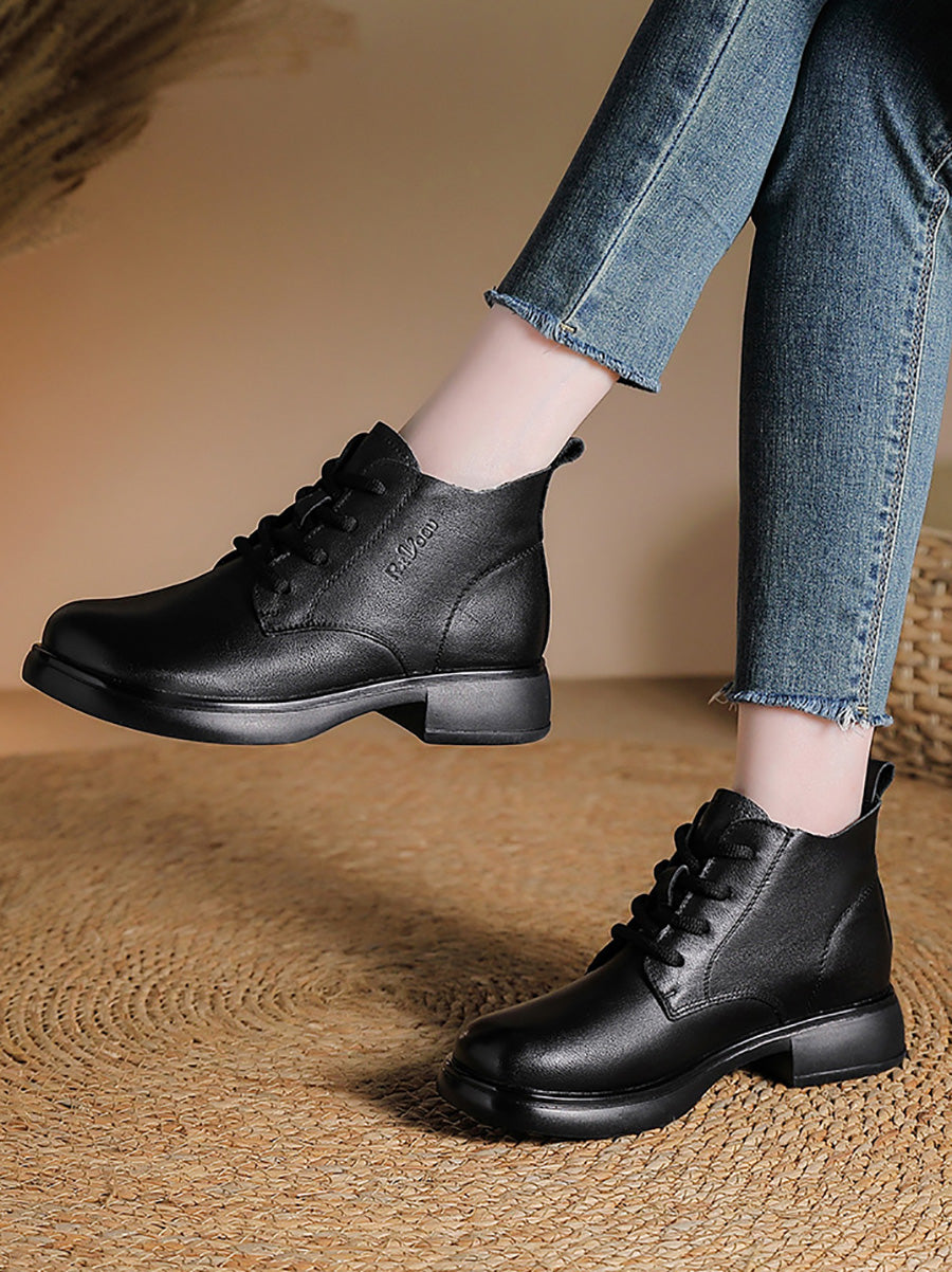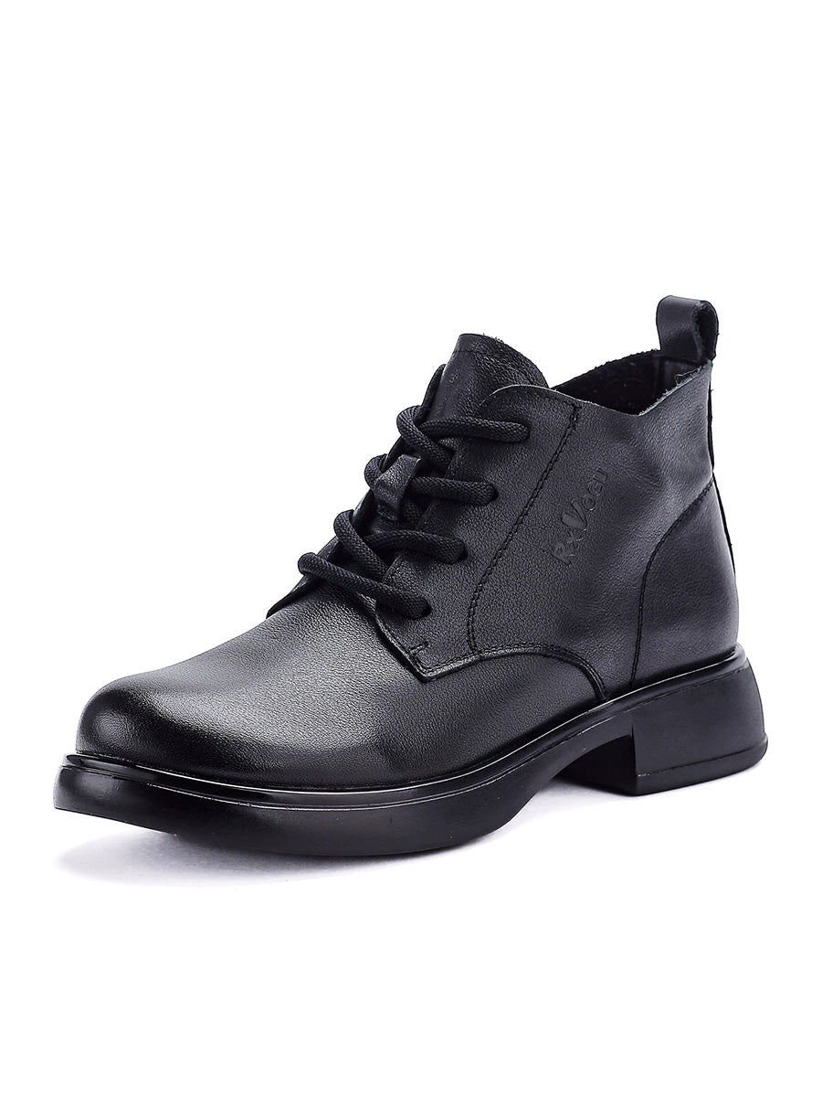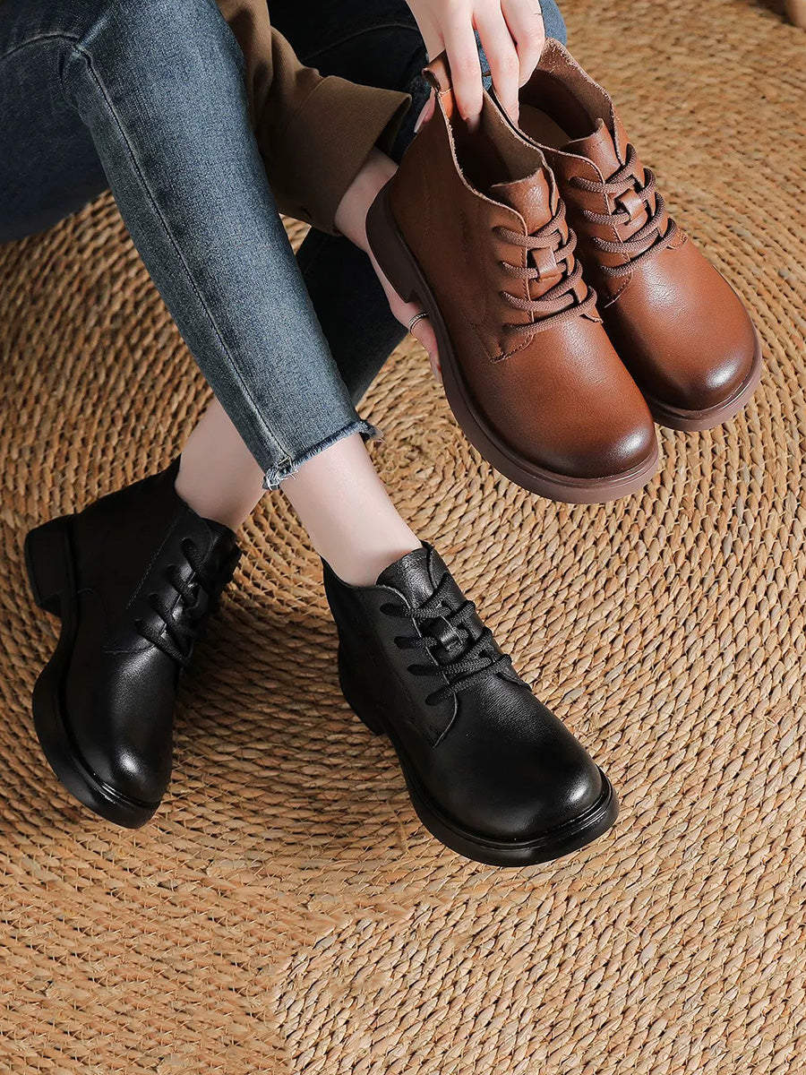 Women Vintage Genuine Leather Low Heel Ankle Boots