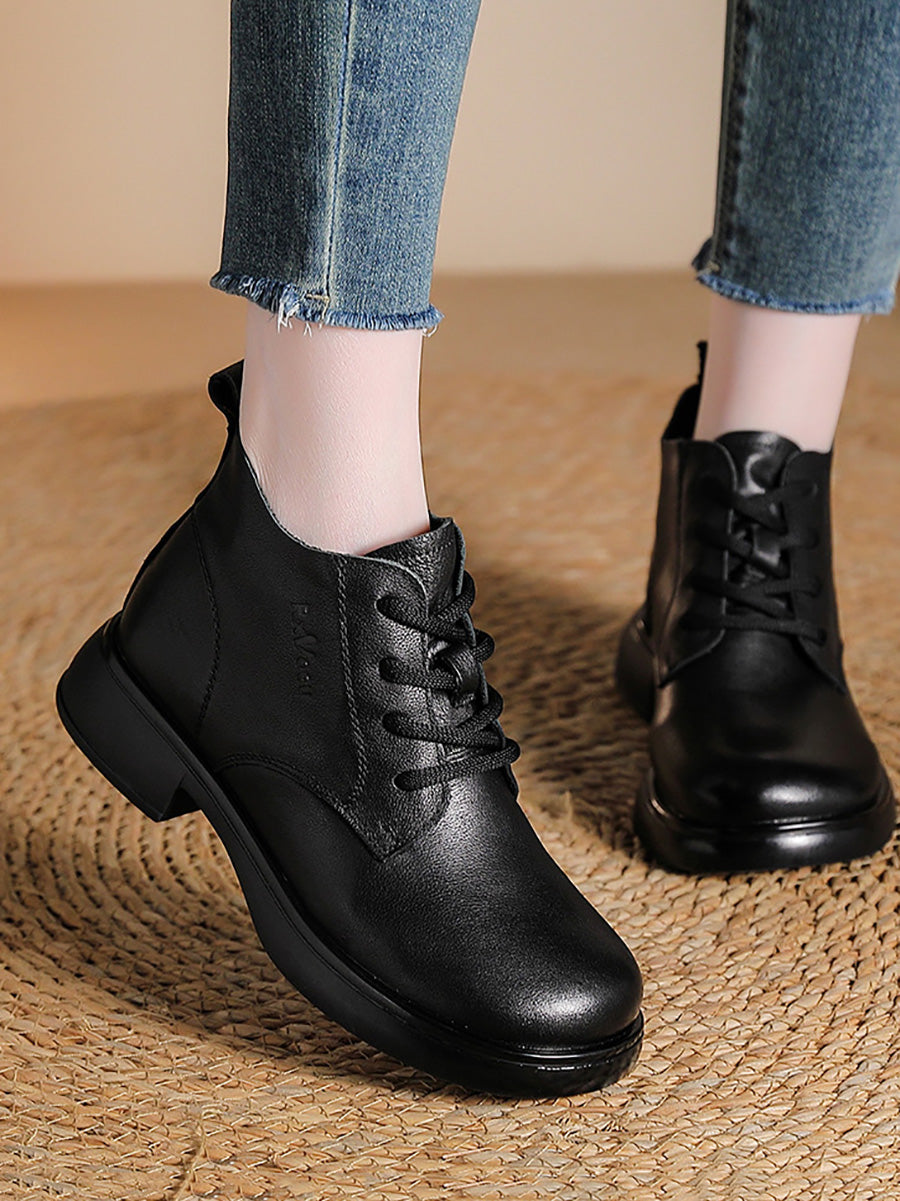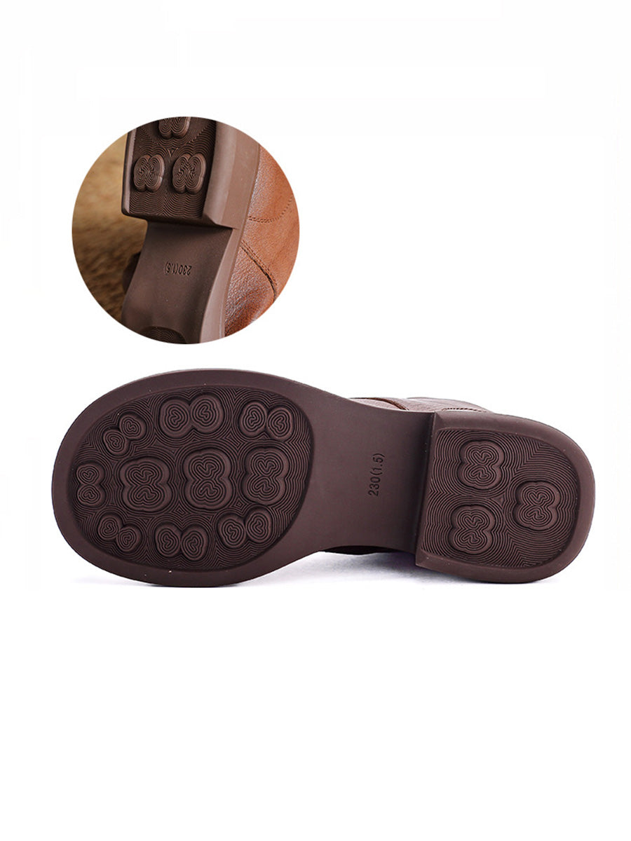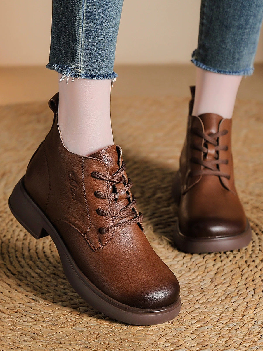 Women Vintage Genuine Leather Low Heel Ankle Boots