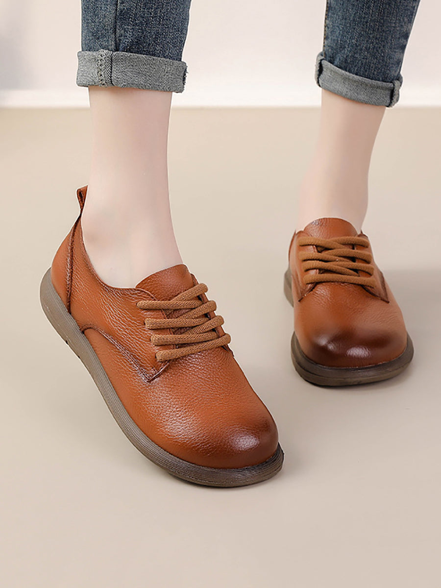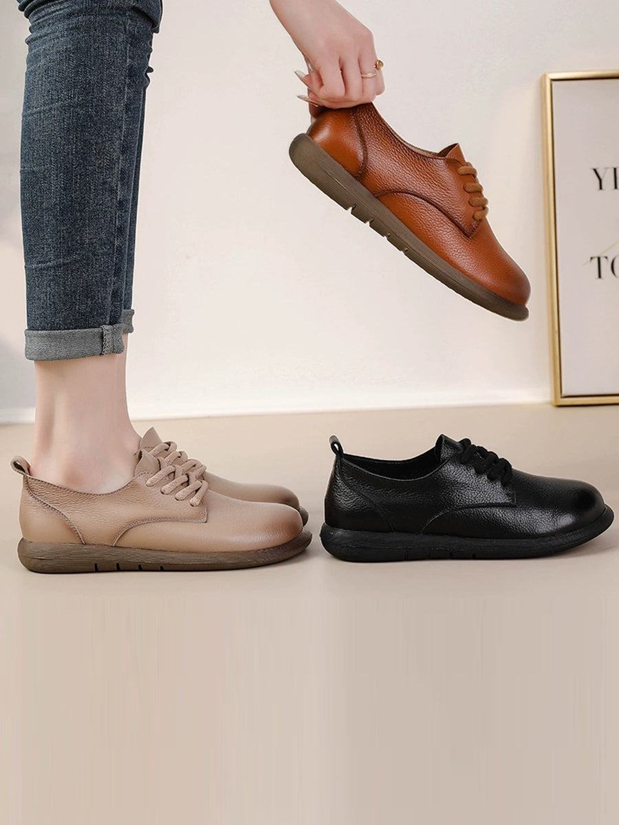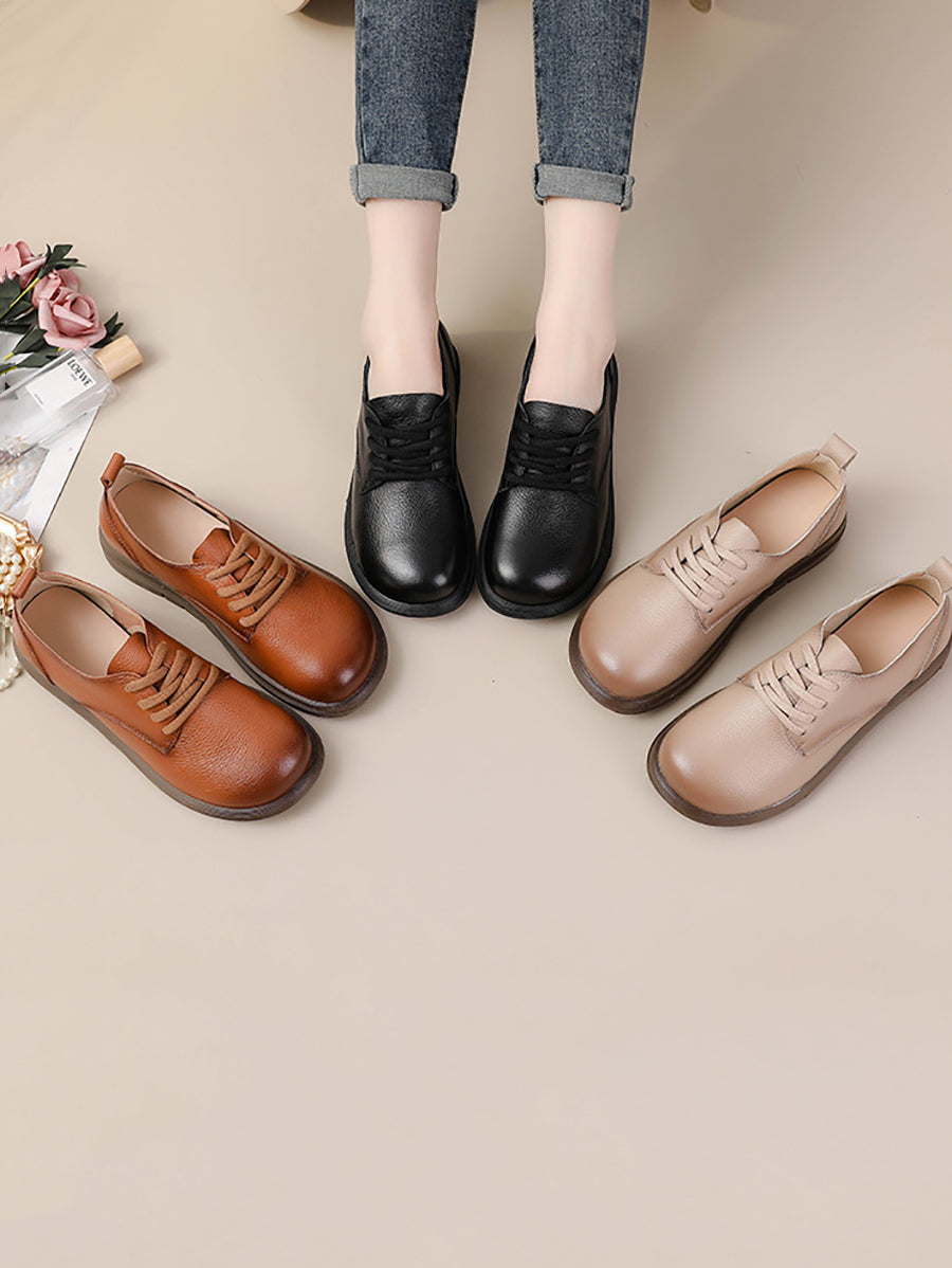 Women Vintage Genuine Leather Spliced Flat Shoes