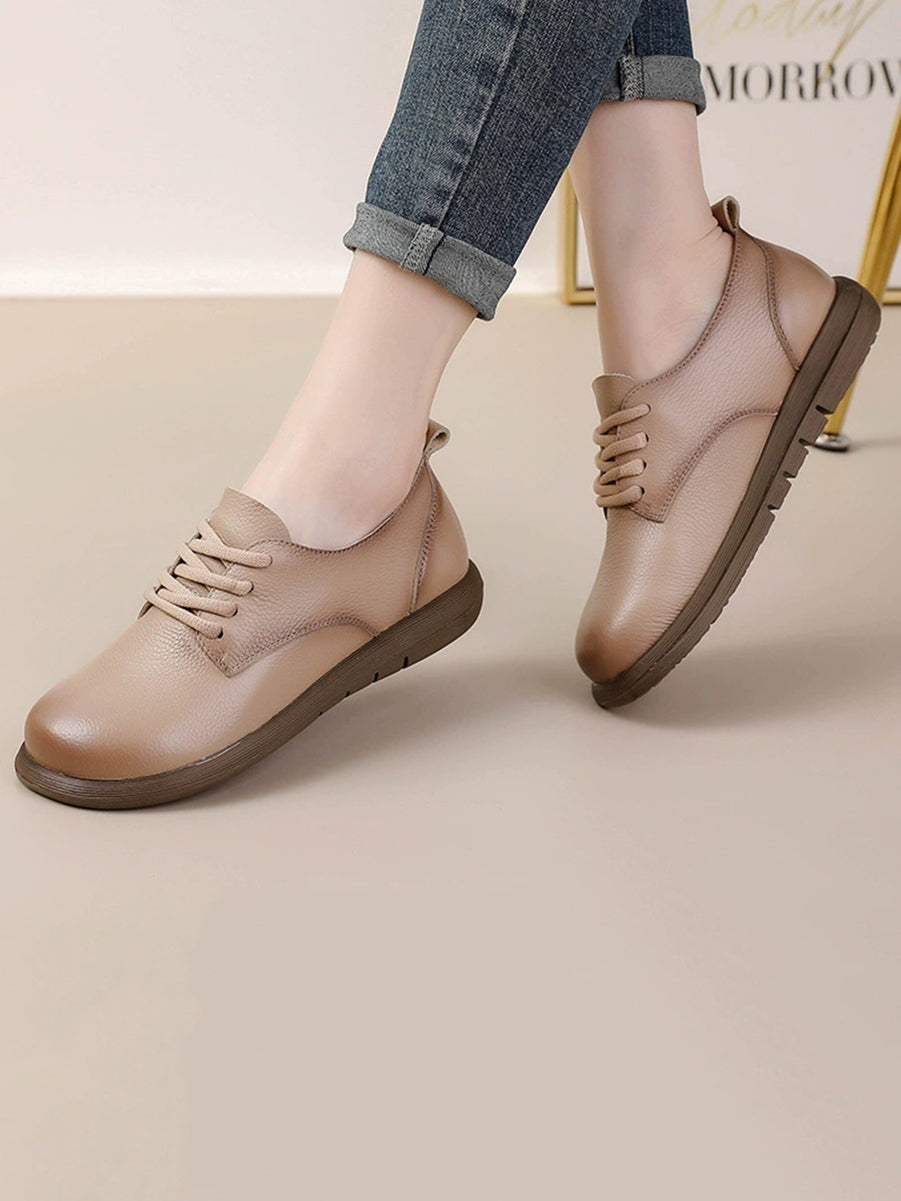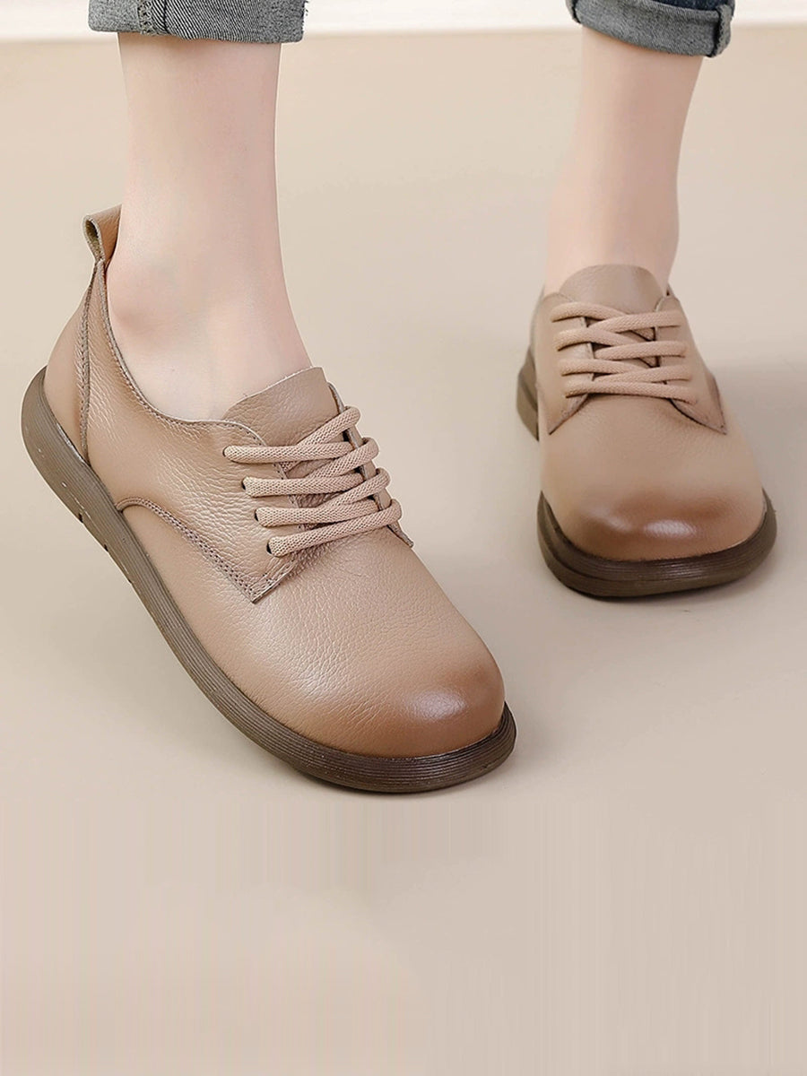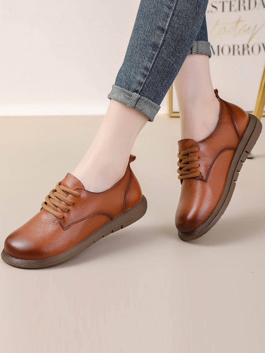 Women Vintage Genuine Leather Spliced Flat Shoes