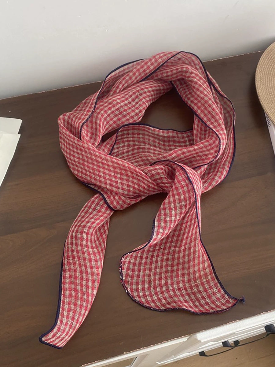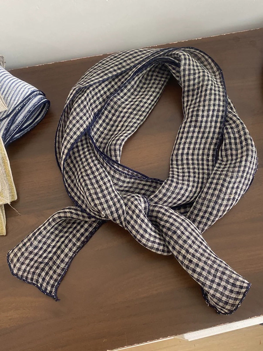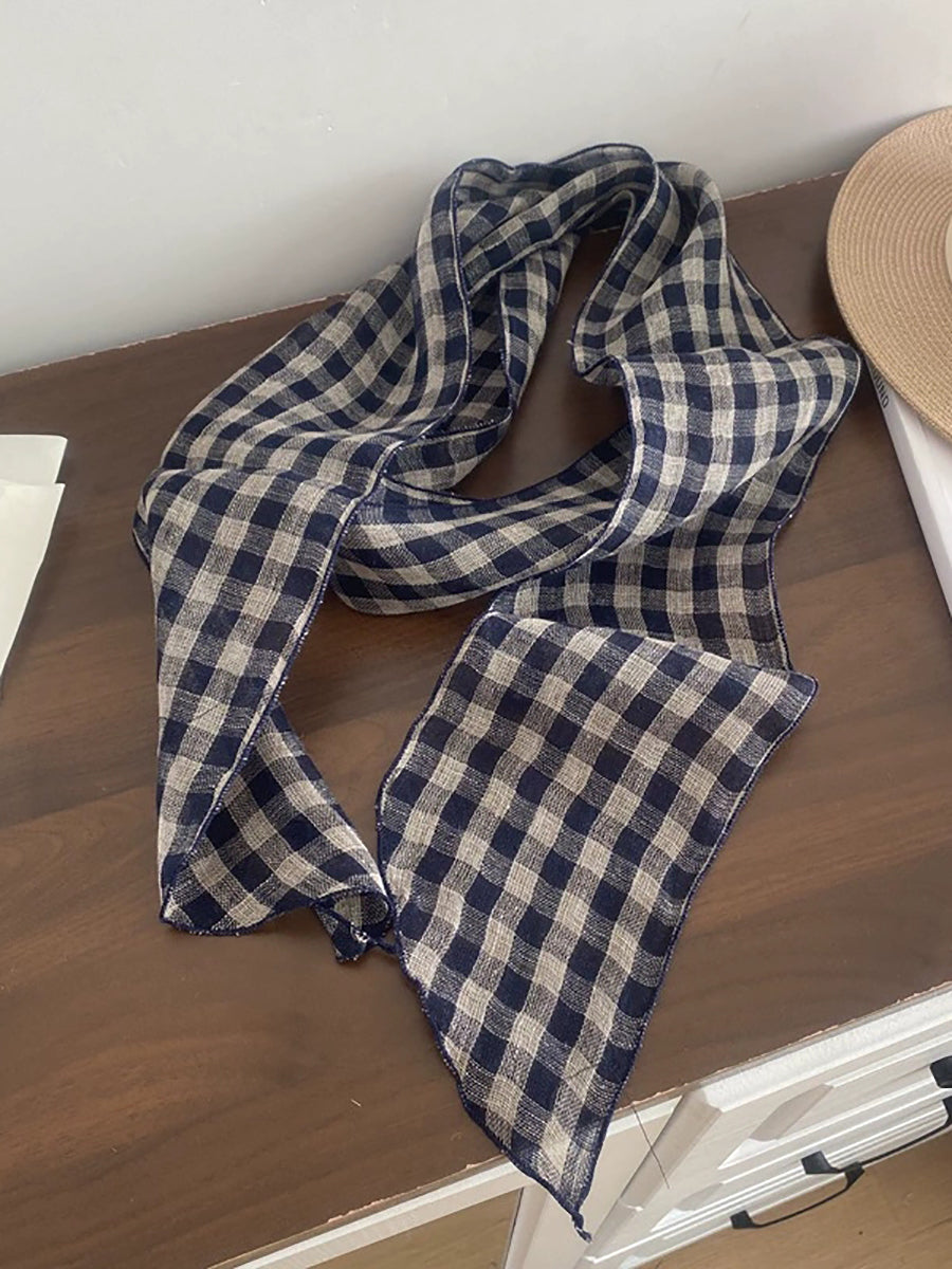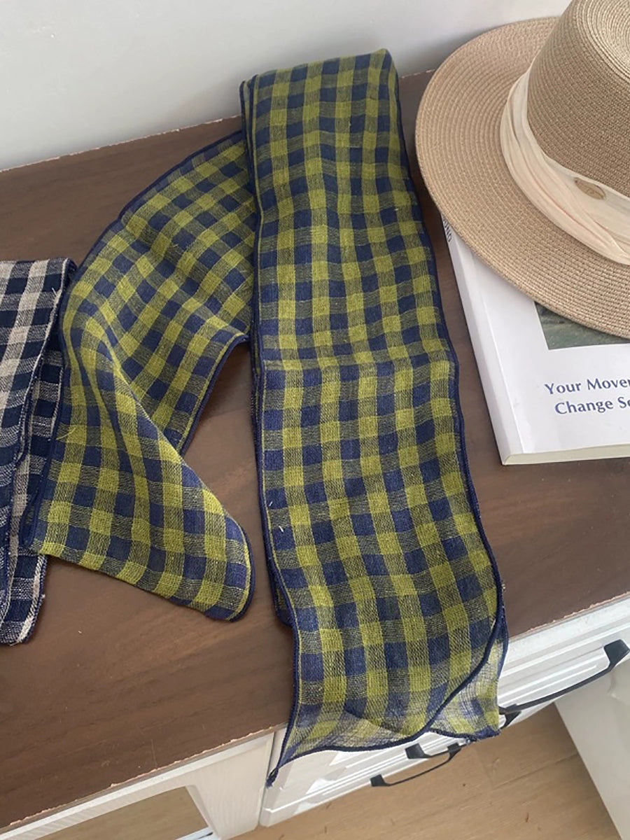 Women Vintage Plaid 100%Linen Thin Scarf