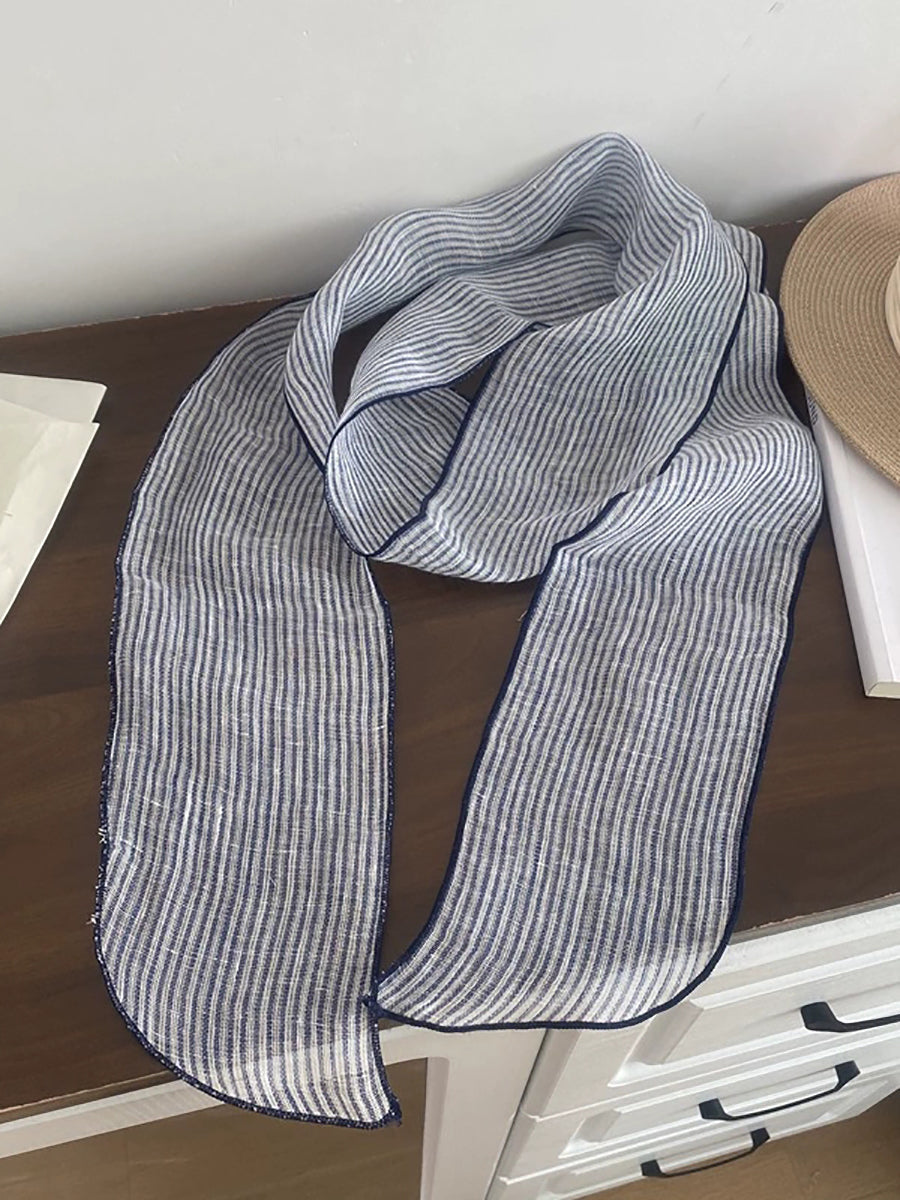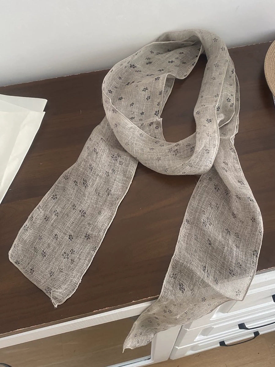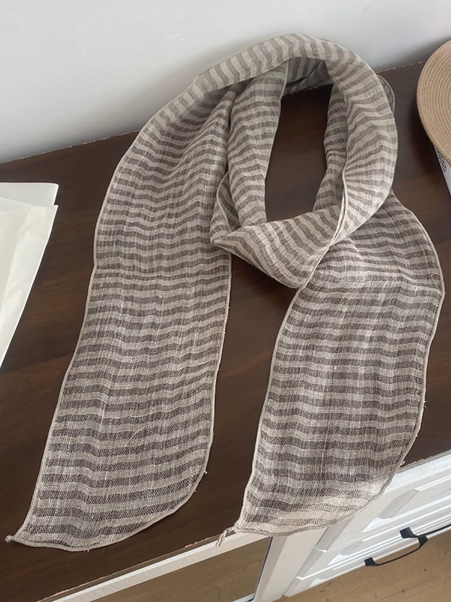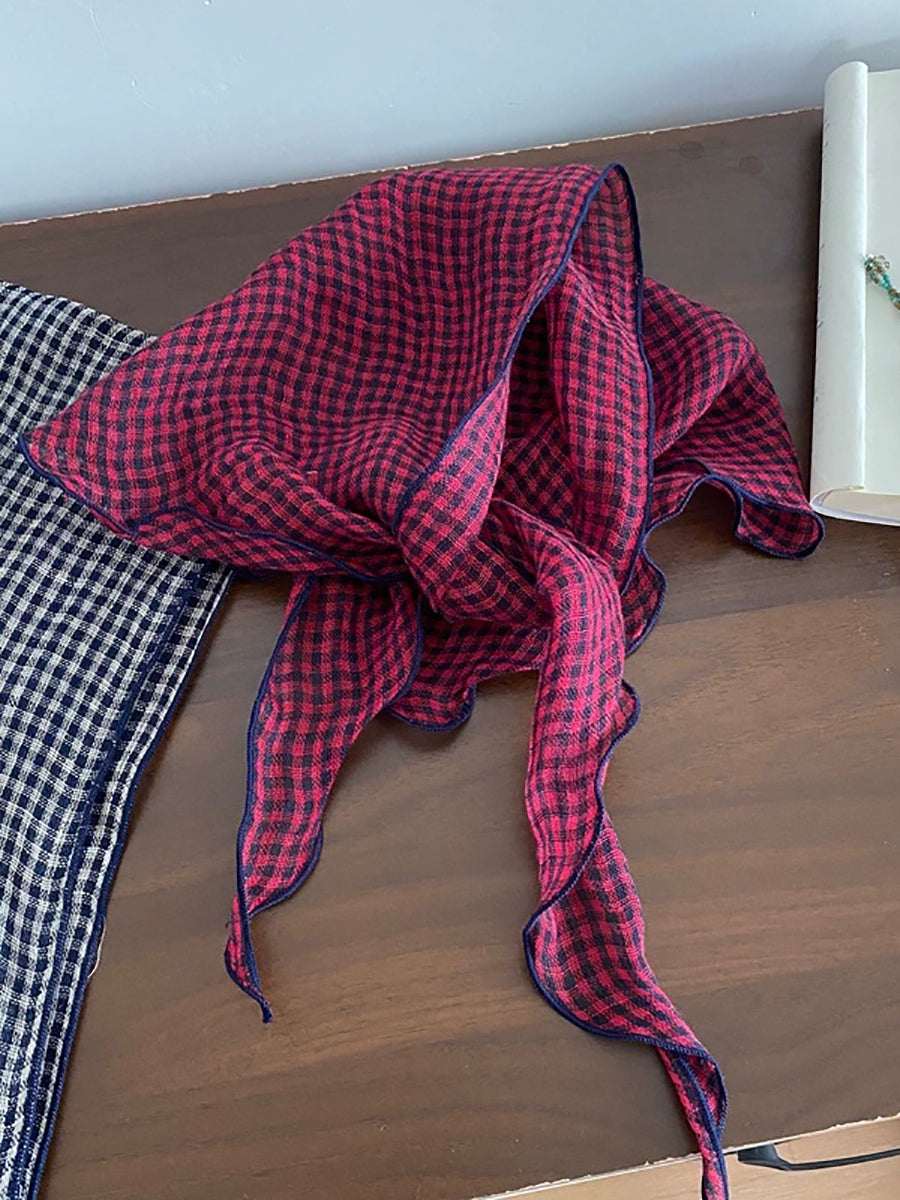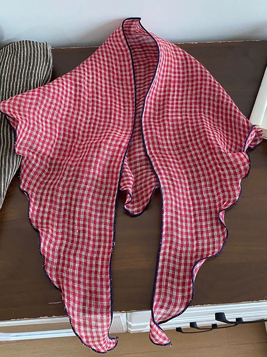 Women Vintage Plaid 100%Linen Thin Scarf