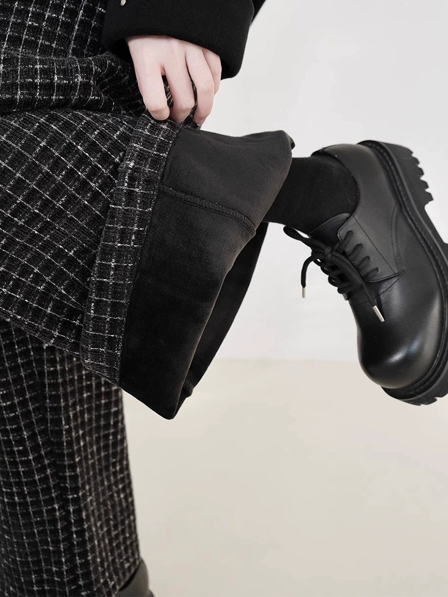 Women Vintage Plaid Fleece-lined Staight Pants