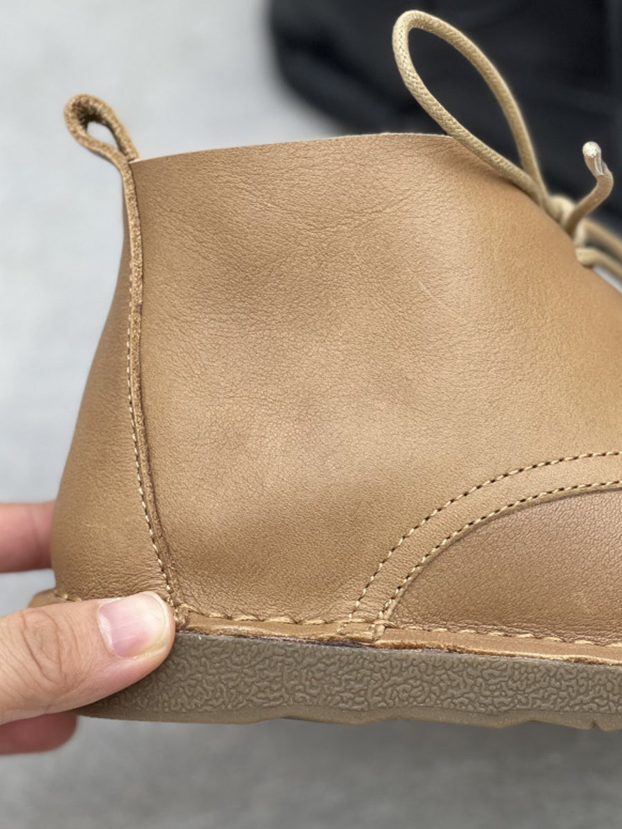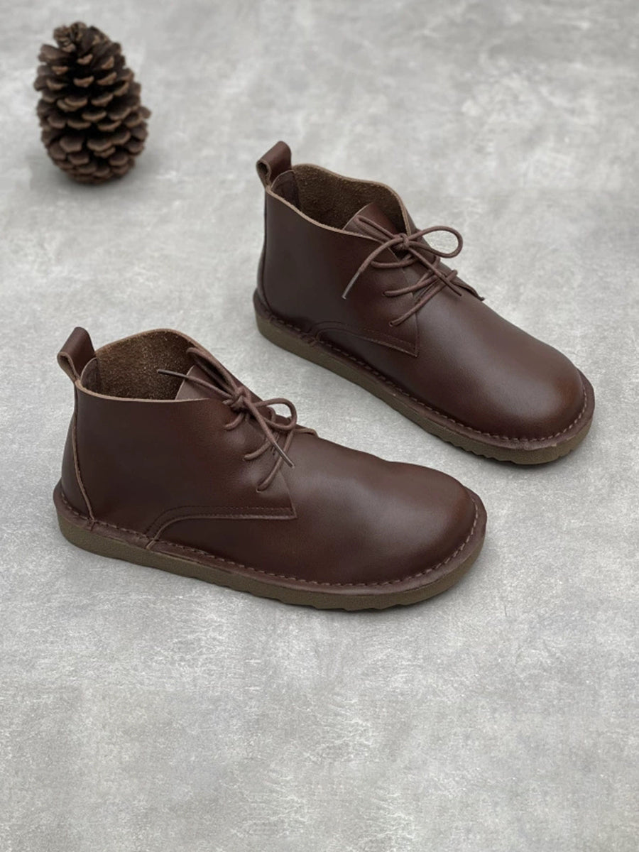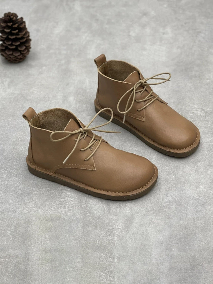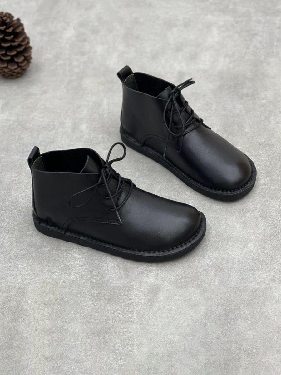 Women Vintage Pure Color Genuine Leather Ankle Boots