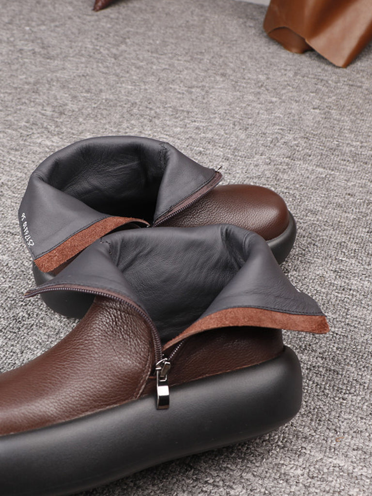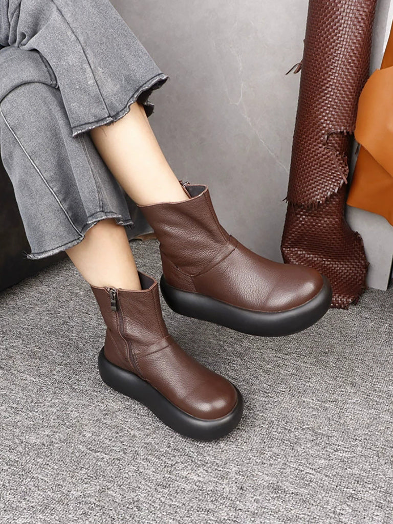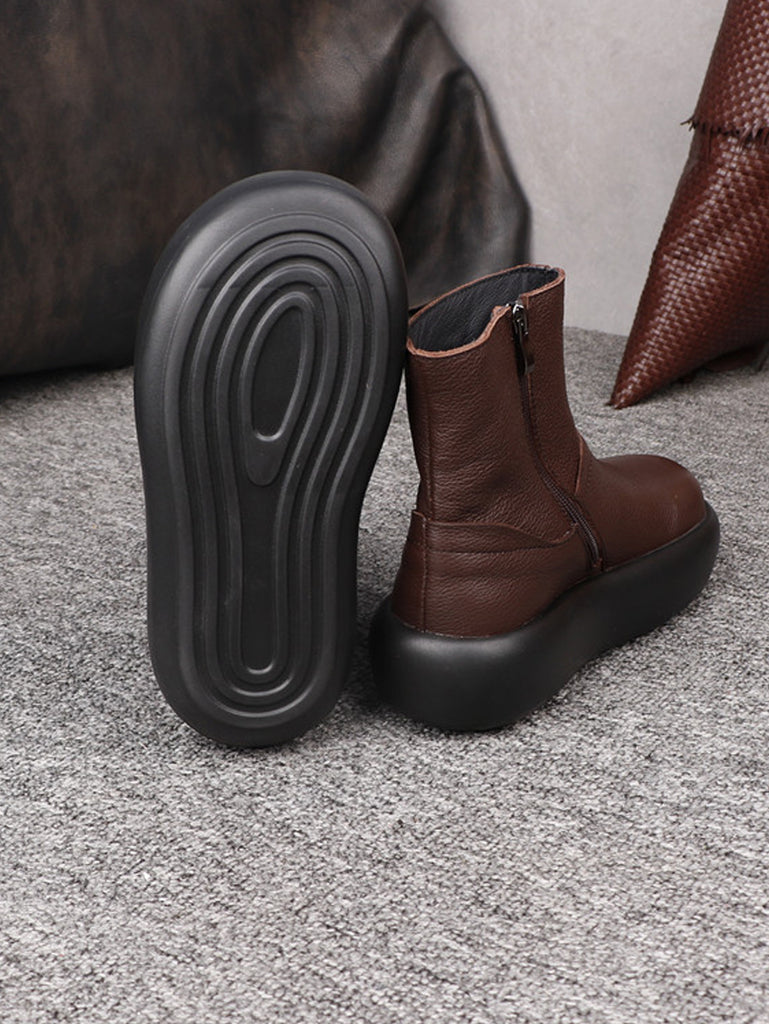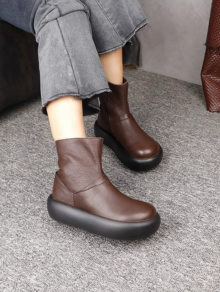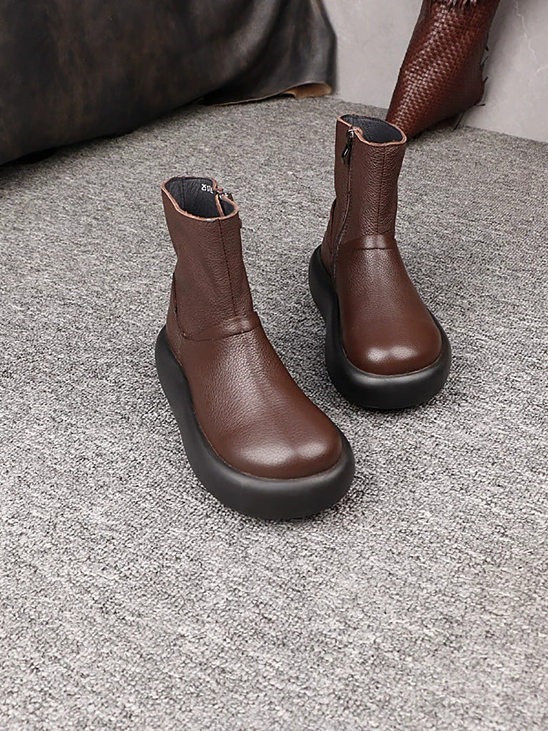 Women Vintage Pure Color Genuine Leather Ankle Boots