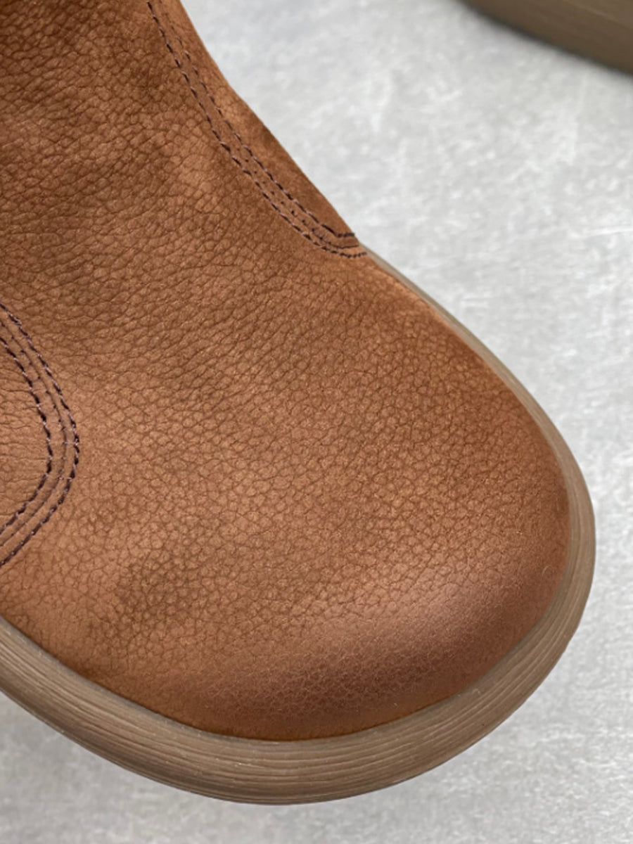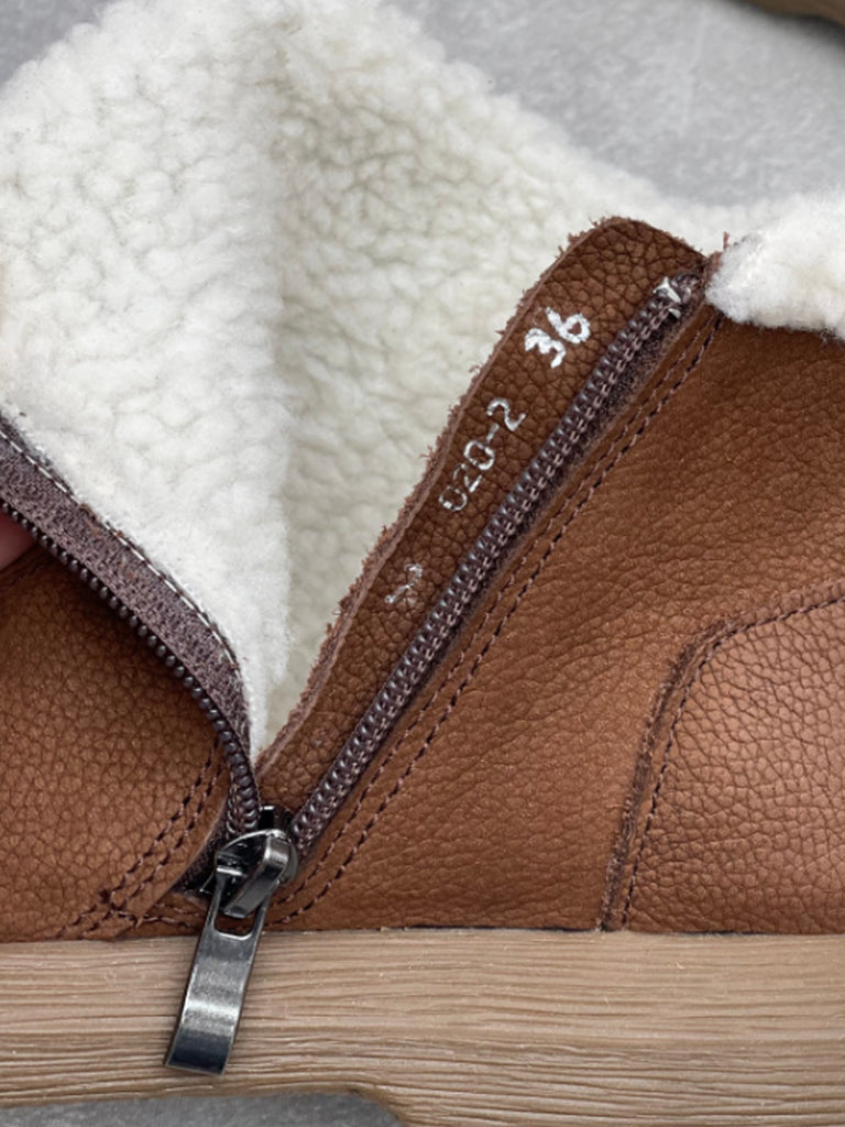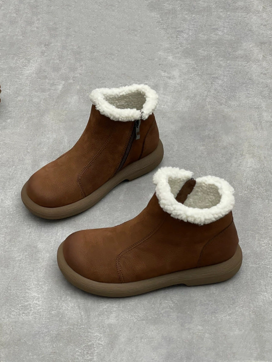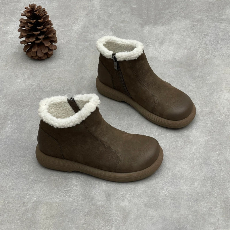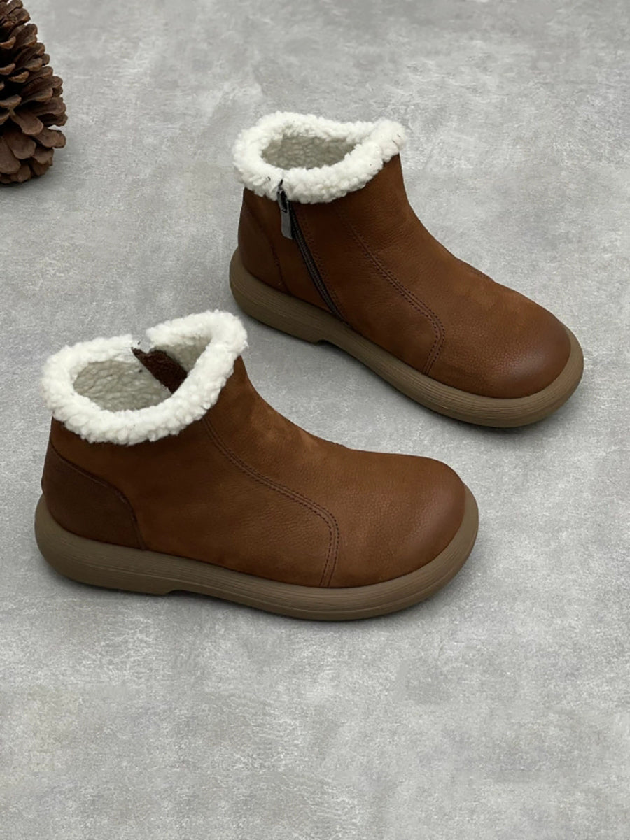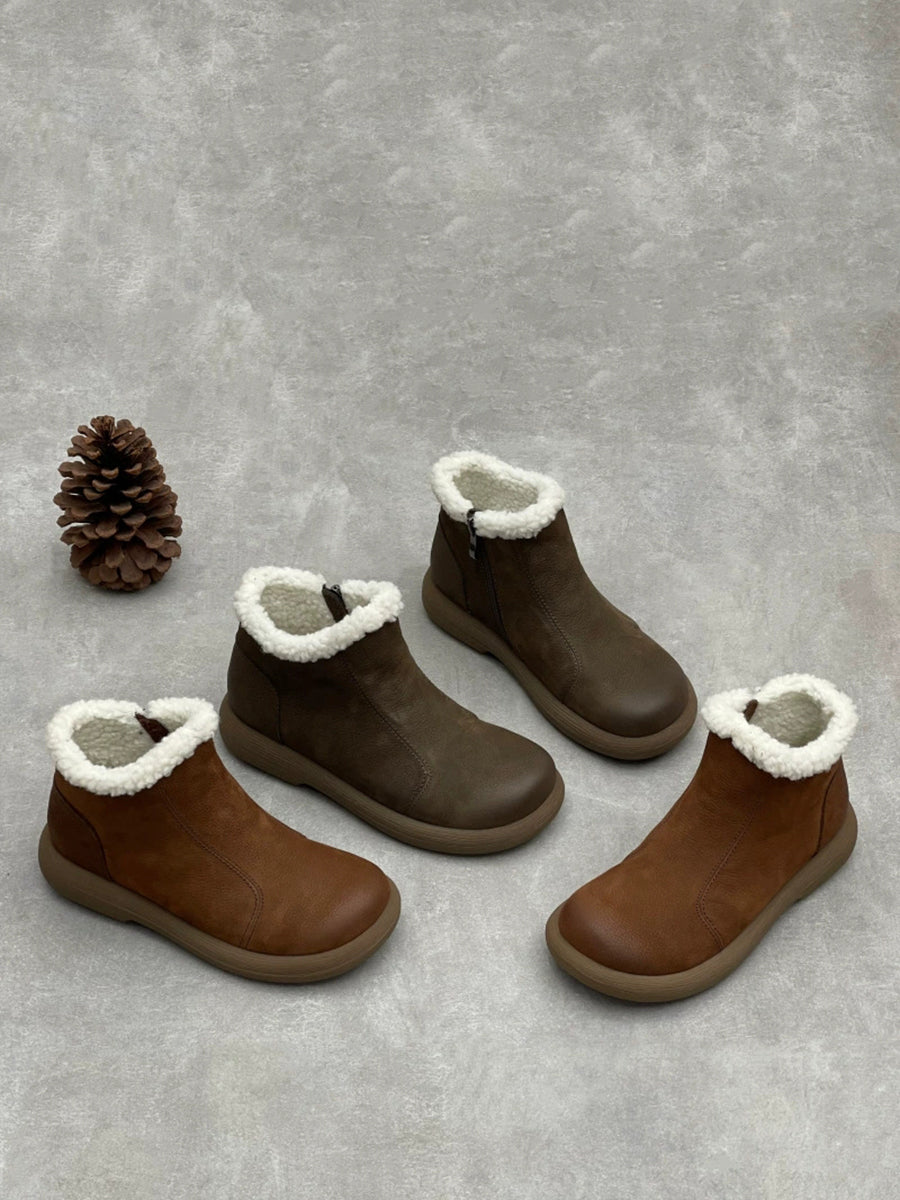Women Vintage Pure Color Leather Fleece-lined Boots