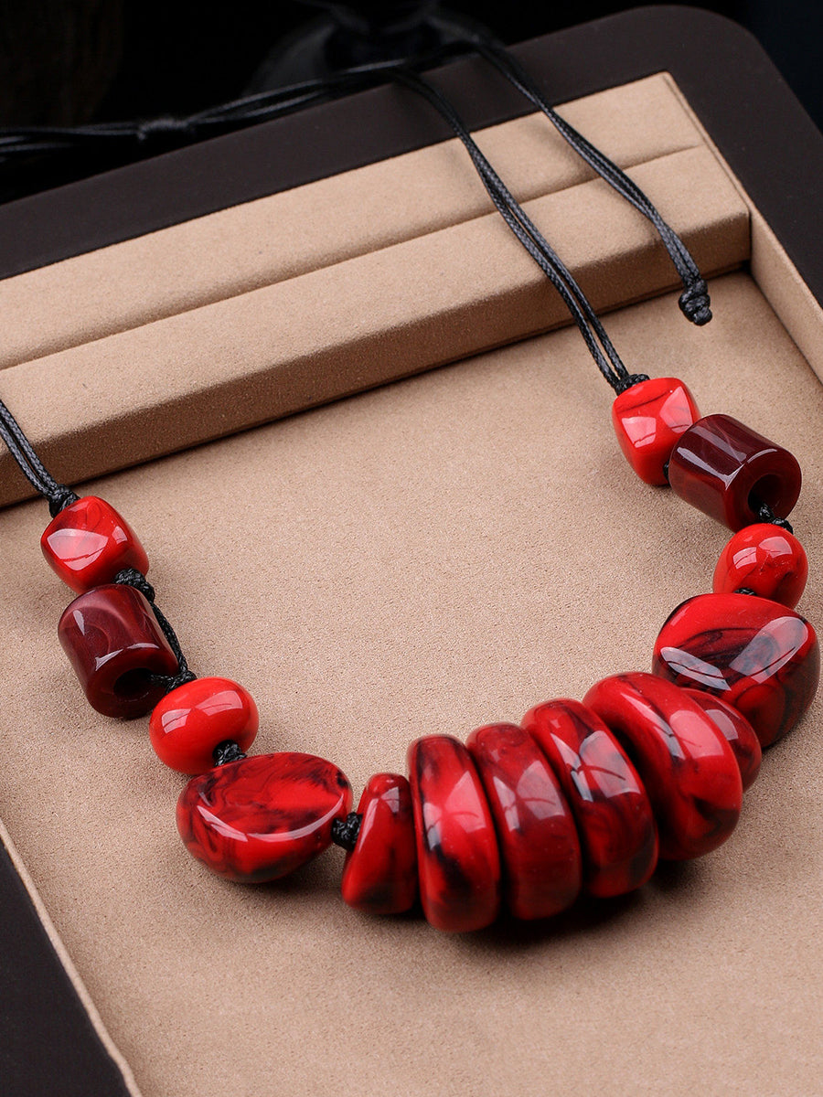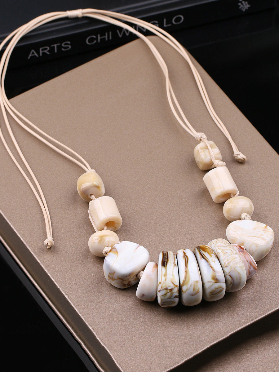 Women Vintage Stone Weave Pendant Necklace