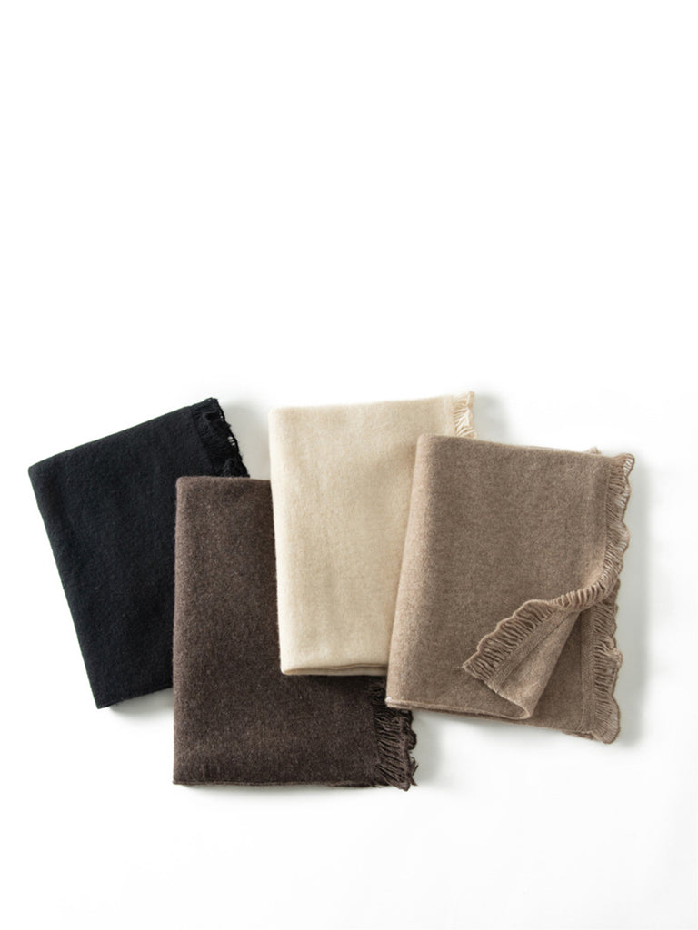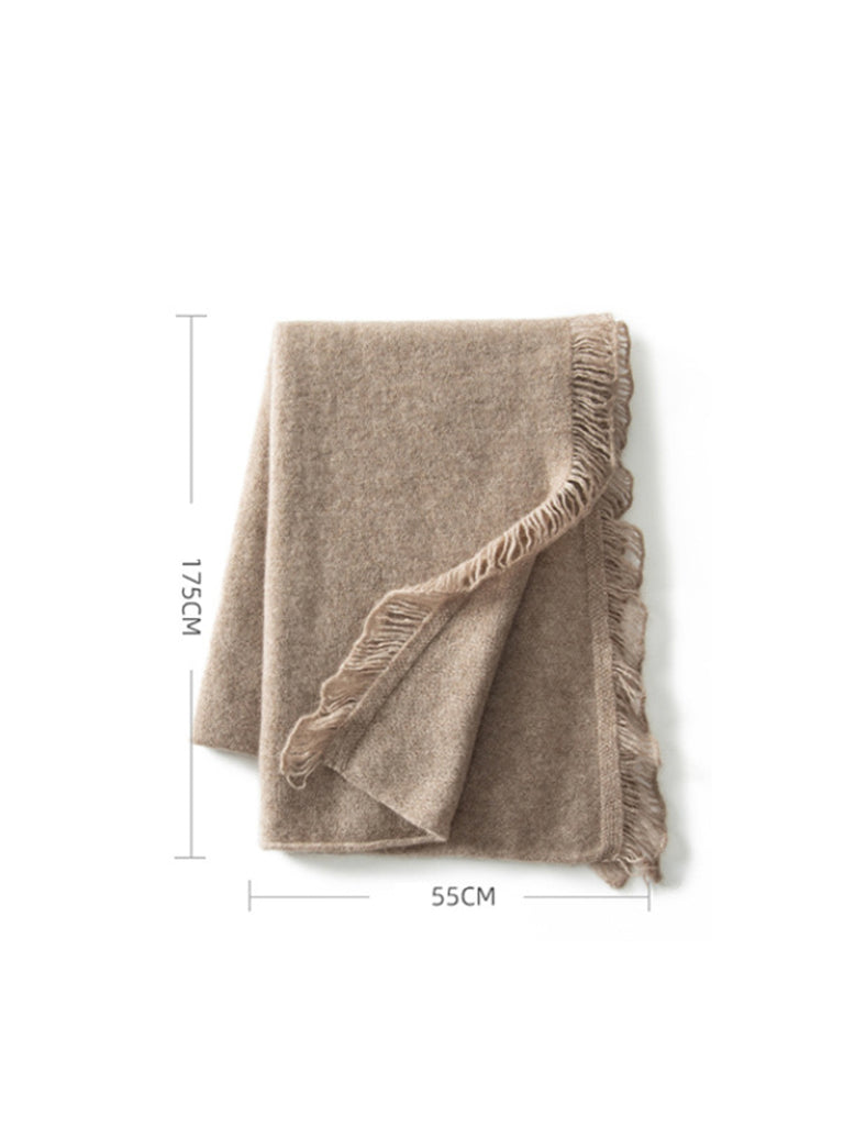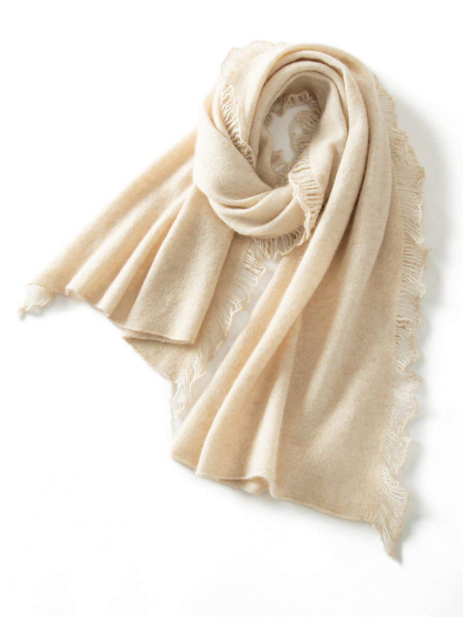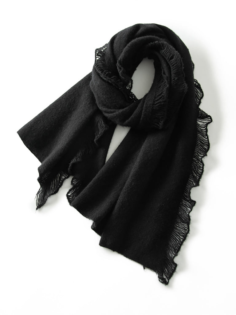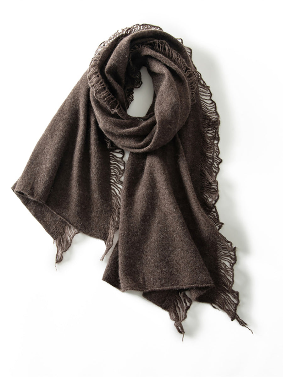 Women Vintage Warm Cashmere Solid Tassel Scarf