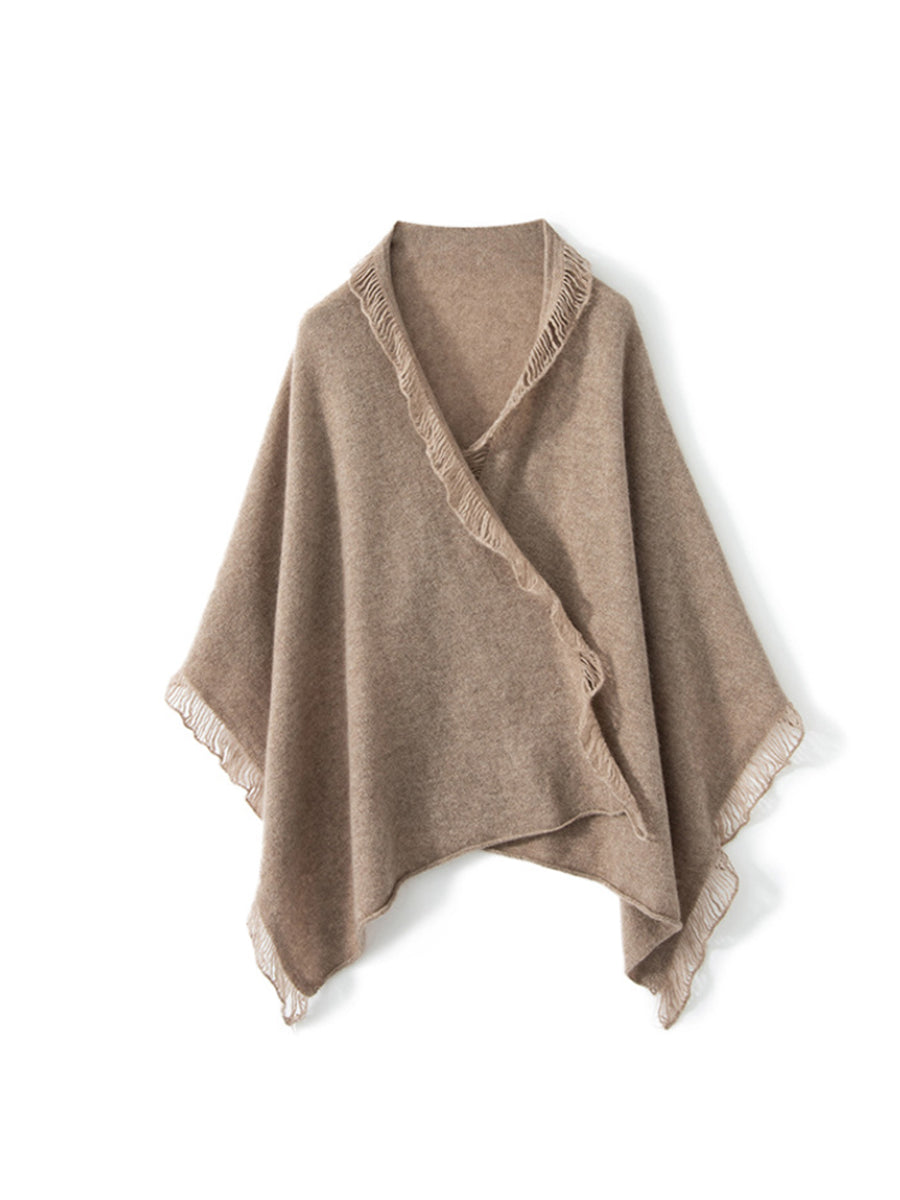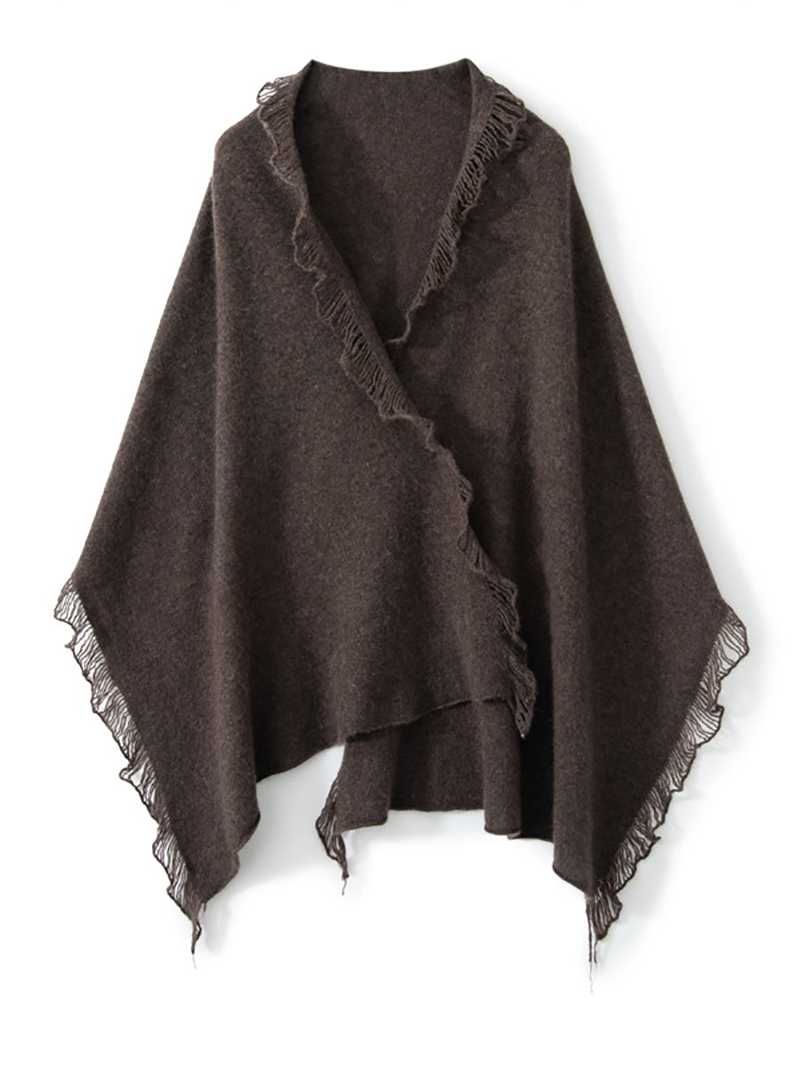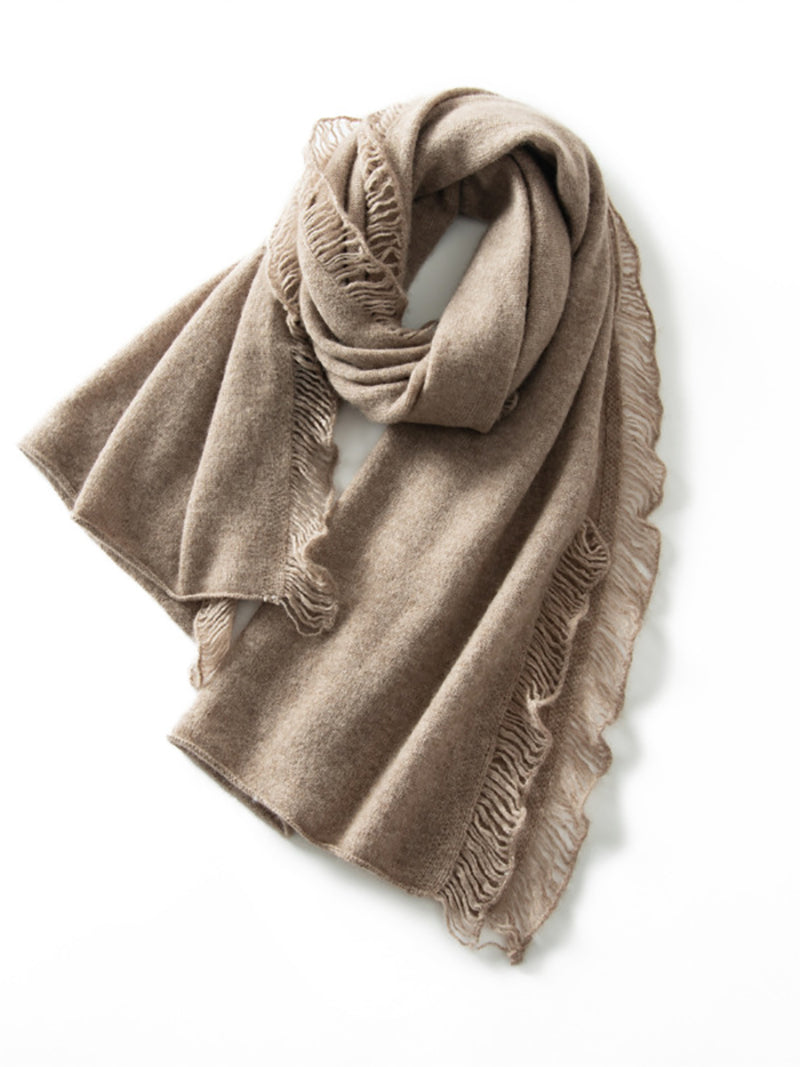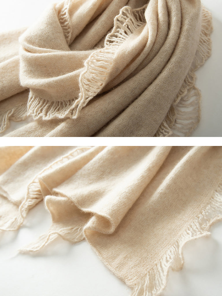 Women Vintage Warm Cashmere Solid Tassel Scarf