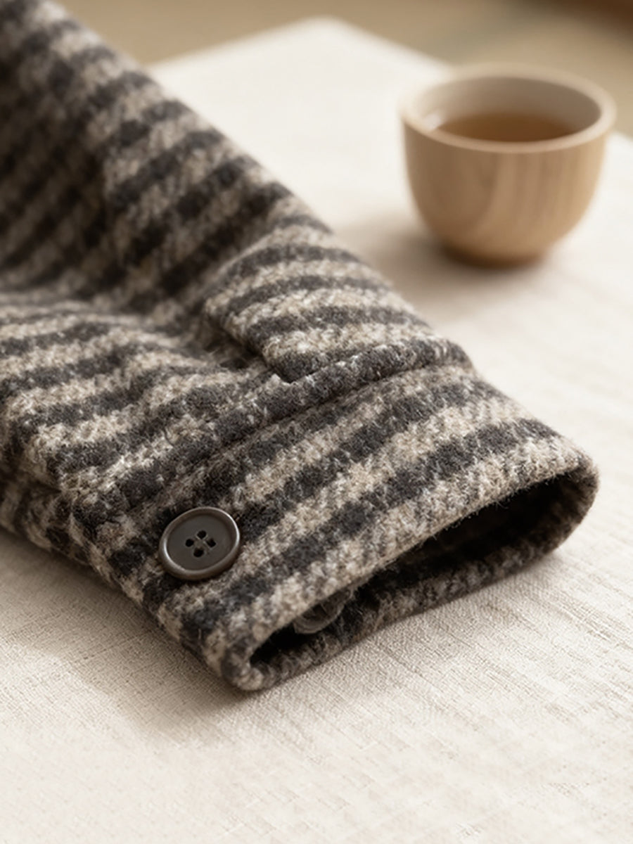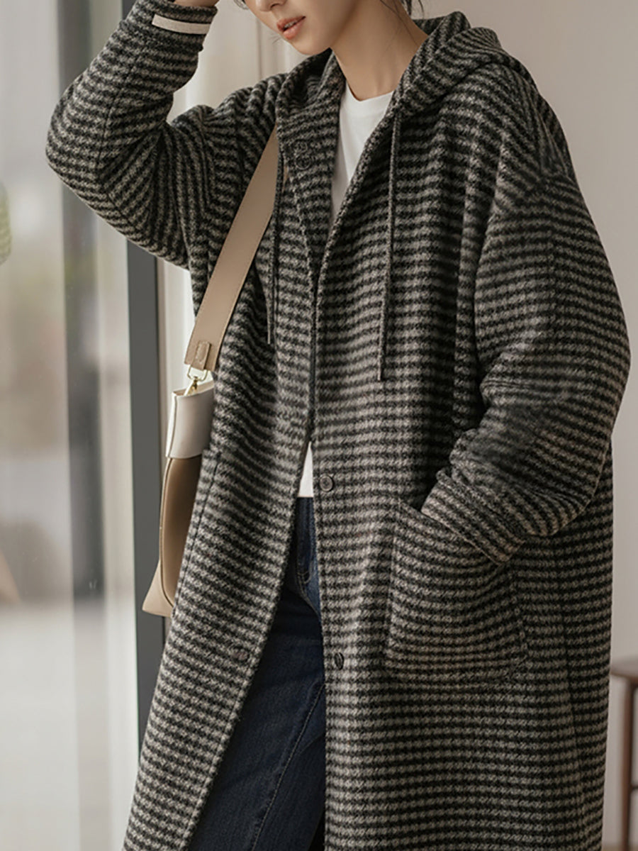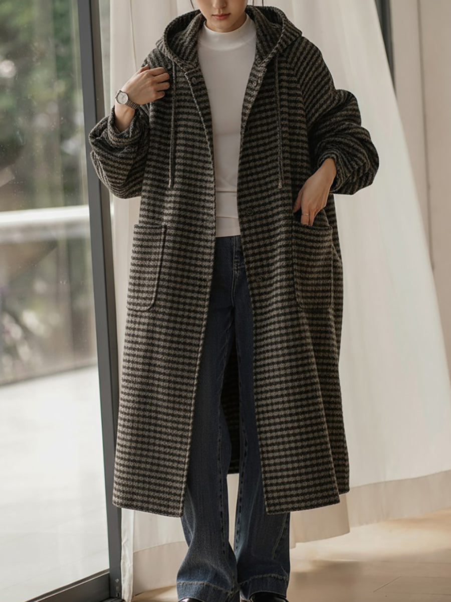 Women Vintage Winter Stripe Hooded Coat