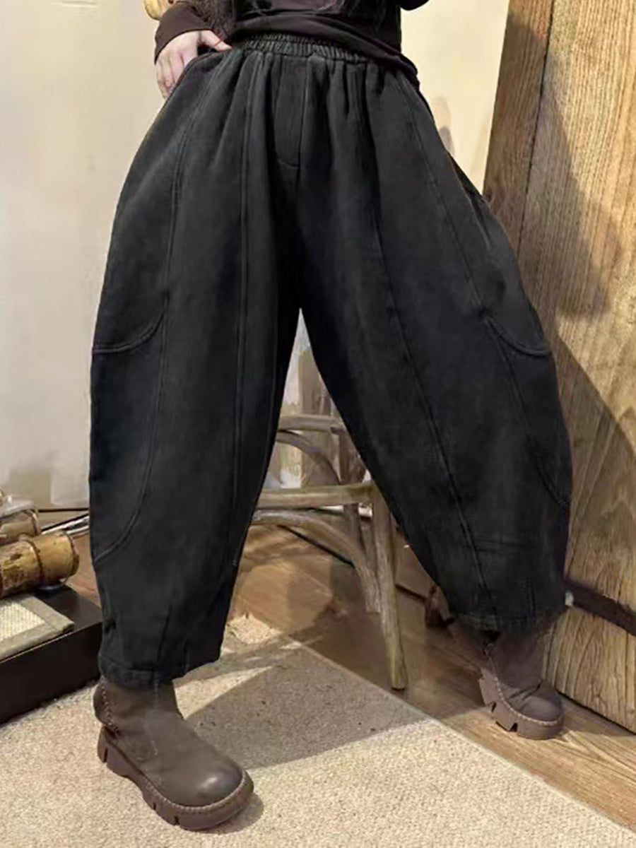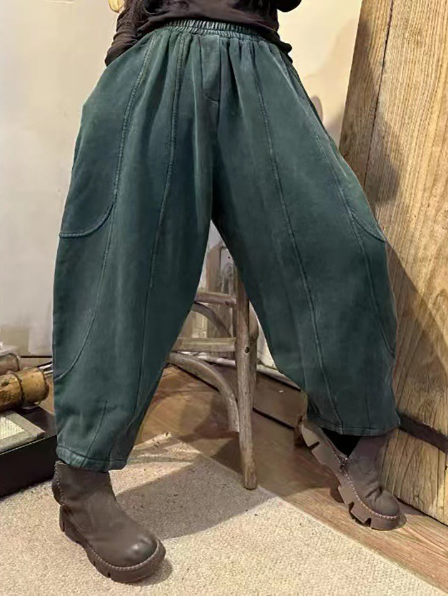 Women Vintage Worn Solid Spliced Loose Harem Pants