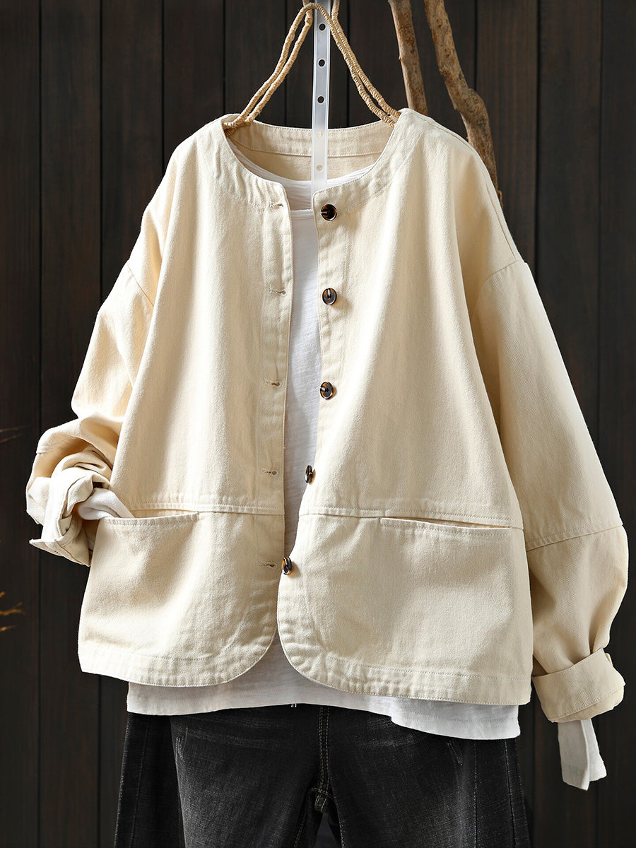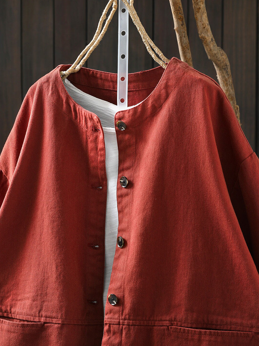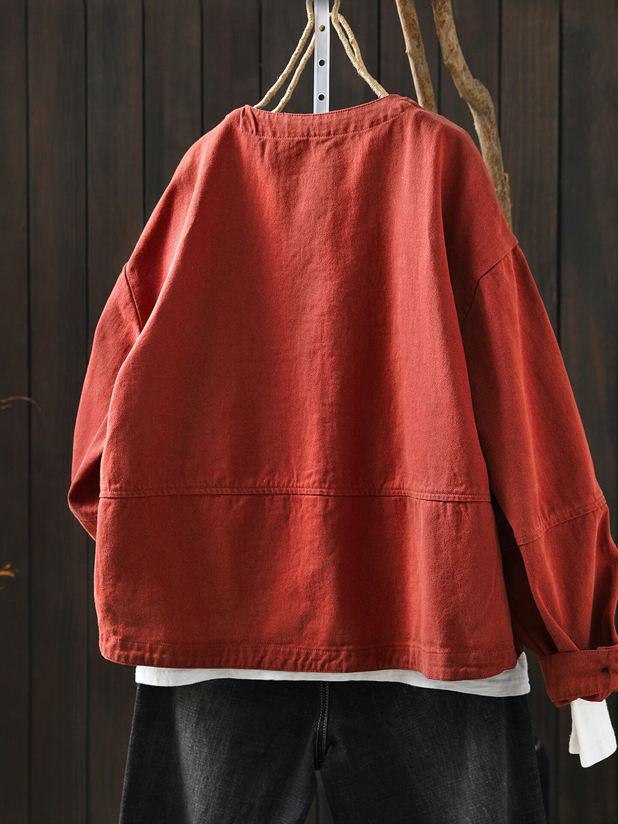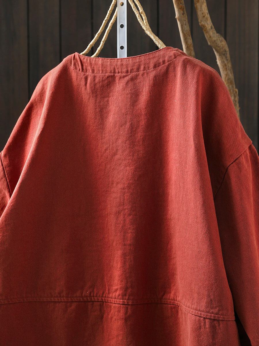 Women Winter Artsy Pure Color O-Neck 100%Cotton Shirt