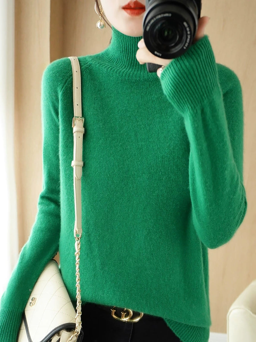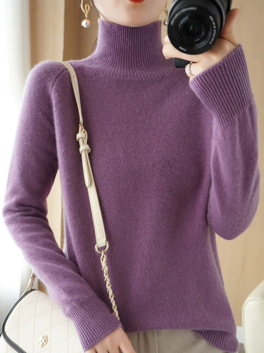 Women Winter Artsy Pure Color Turtleneck Sweater